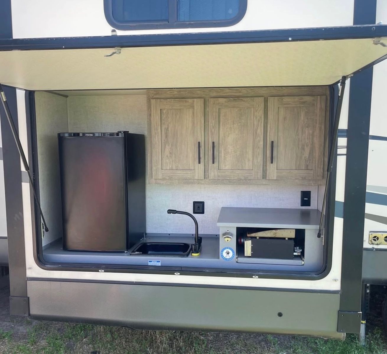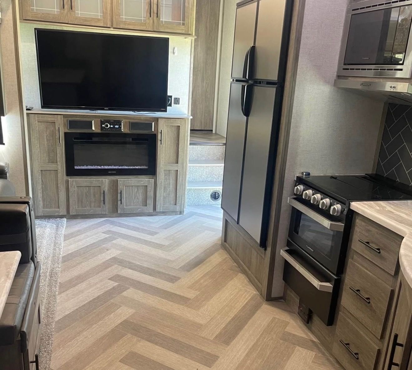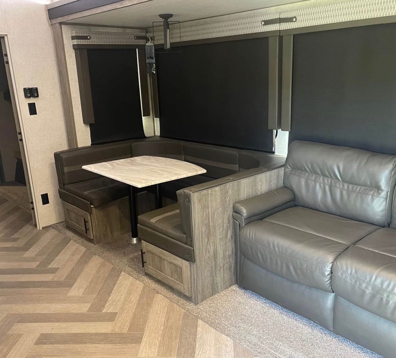 42 foot fifth wheel been lived in for the past two years been a sweet trailer just don't need it anymore furnace and ac serviced every year. Has a kids room in the back with its own bathroom and two beds and you can fit a twin under the bunk bed I took the couch that was in there out and had a crib. Two small tears on the flooring that I have glued back down and sealed so there's no leak. what I've found in its shape it MSRP's for 47000 asking 40,000 just wanting to get rid of it for what I owe.