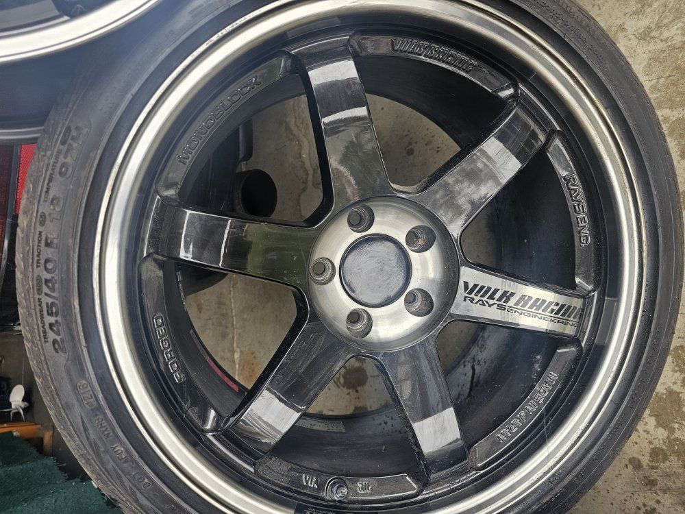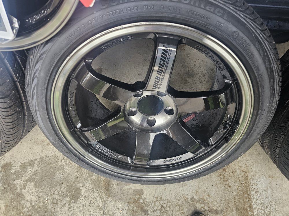 PayPalVolk Racing TE37 SL 5x114.3 18x9.5 22 degree offset, 3 wheels on contiprocontact 245/40r 18 97v. One wheel has a scrape and one wheel is brand new with the sticker not attached. and also a random spare. tires have less than 100 miles on them