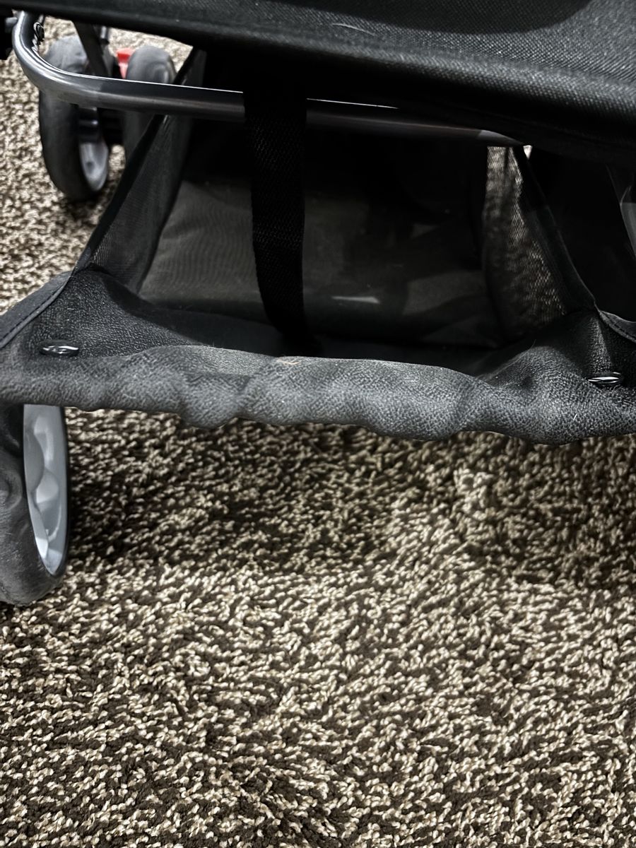 Double pet stroller. Used only a few times. No stains , tears, chew marks. Looks brand new. Two baskets underneath. Folds up very easy Lots of ventilation.. pushes smoothly.