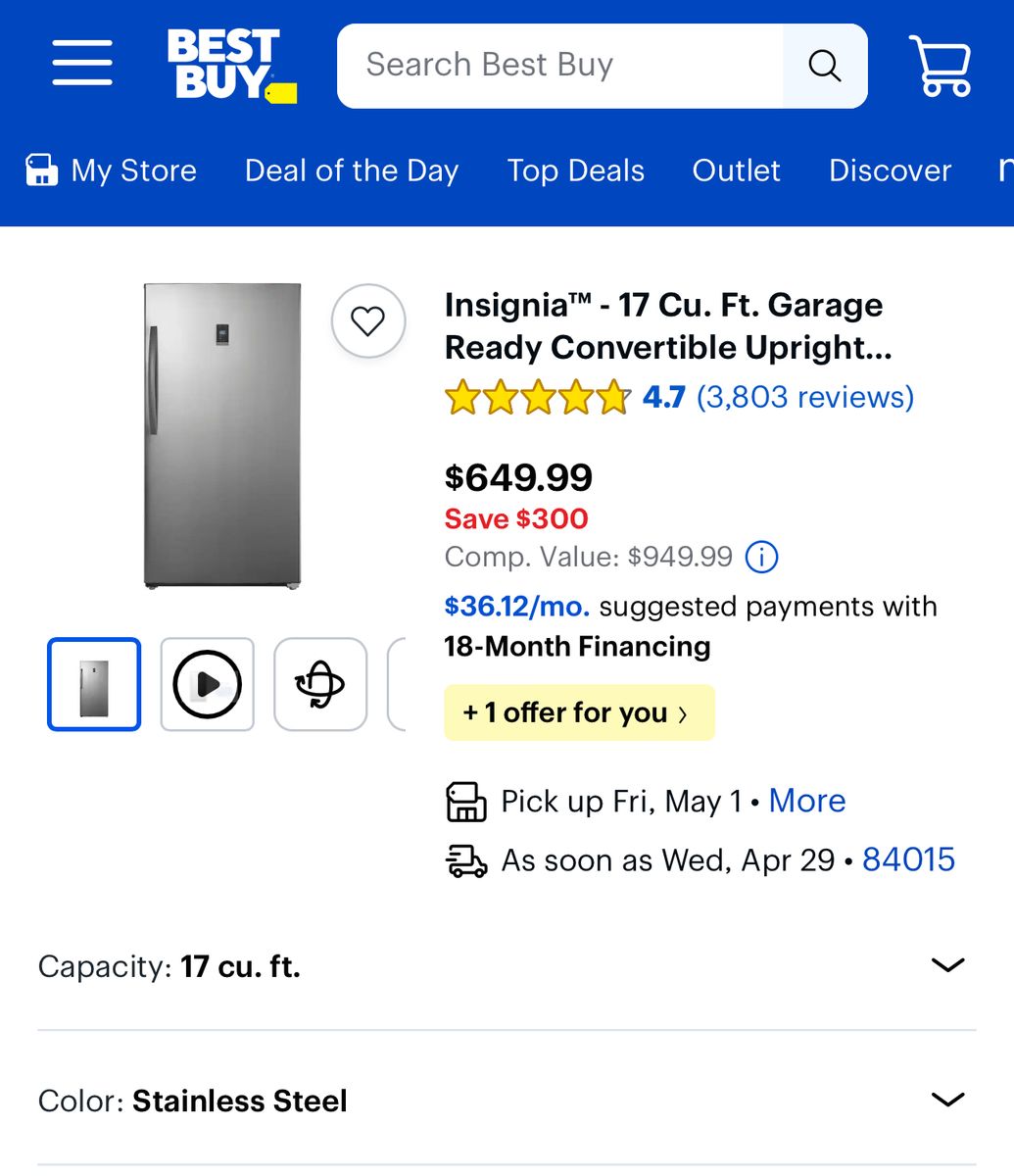 Convertible design. Freeze or refrigerate your food in this Insignia upright freezer simply by changing the temperature settings on the clear and convenient LCD display.