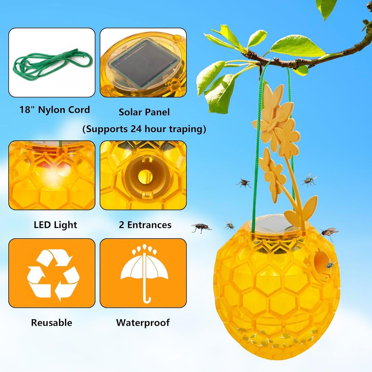 NEW IN BOX! Wasps Traps Outdoor Hanging, Wasp Bee Traps for Outdoor, Bees Catcher Trap, Sticky Fly Bug Insect Deterrent Killer 2 Pack