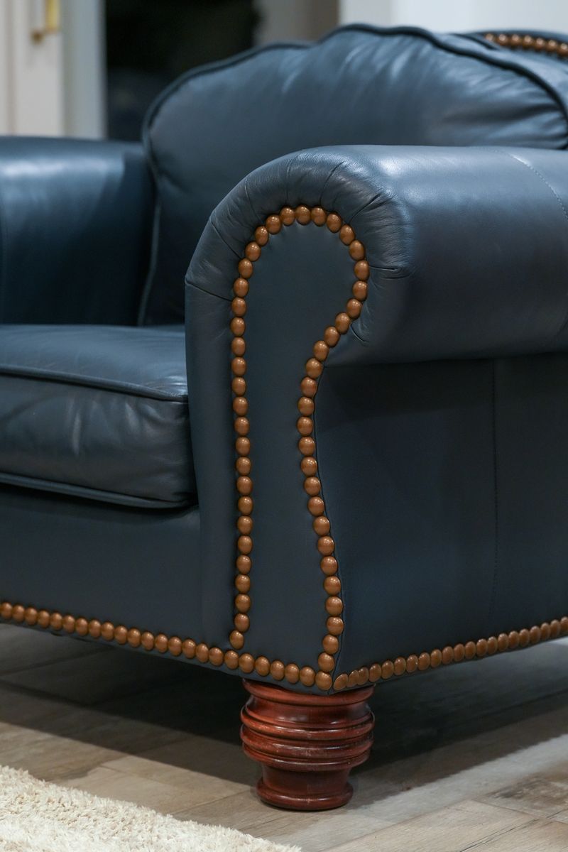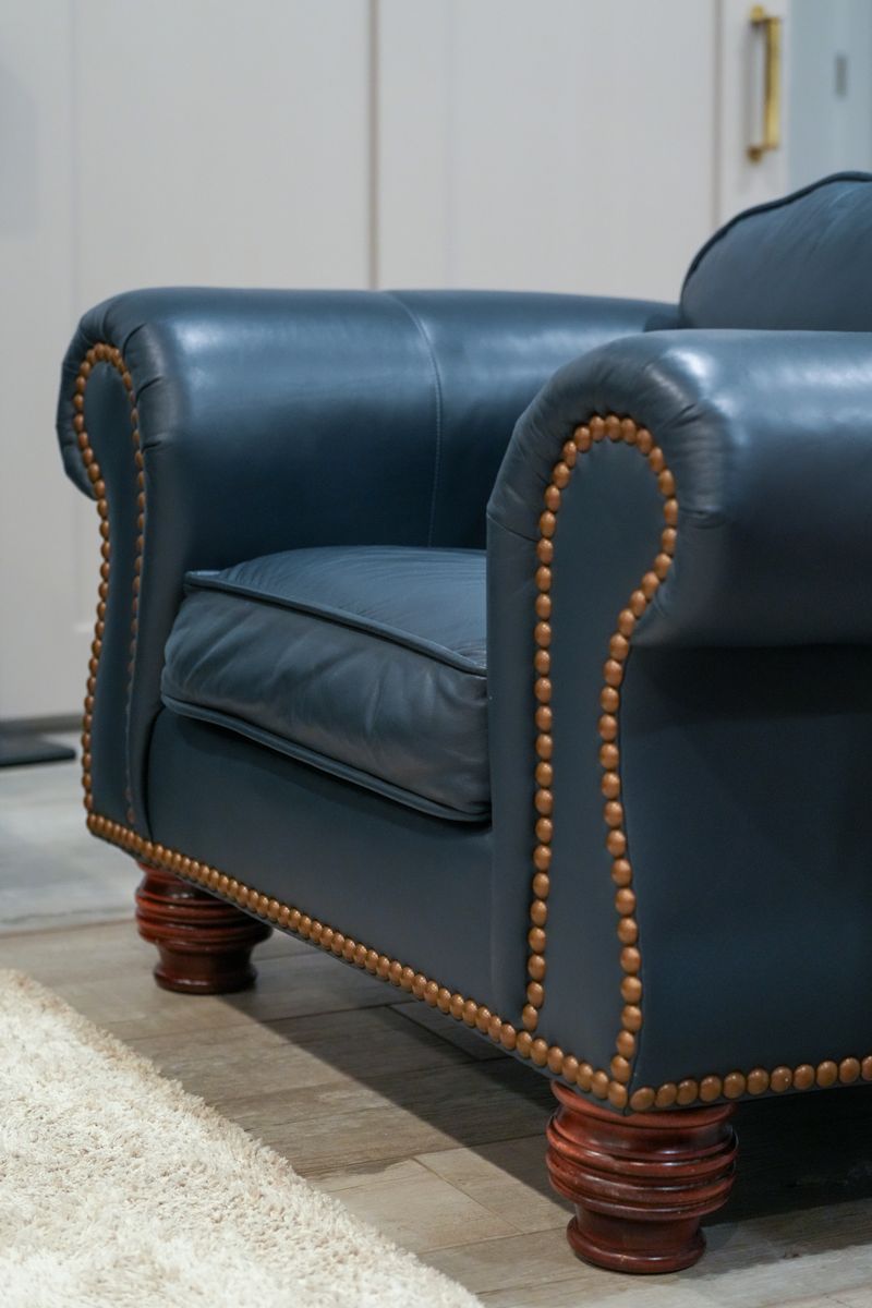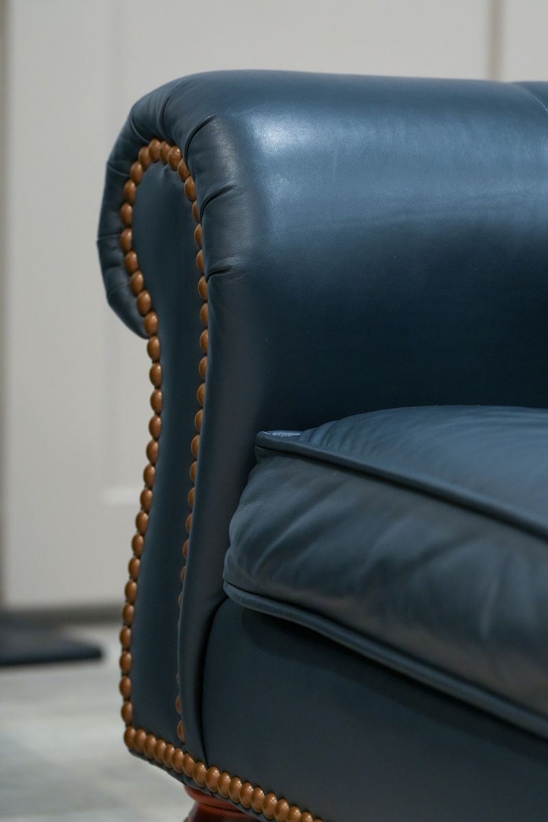 Crafted in Conover, North Carolina, the chair felt as substantial as it looked. When you sank into it, the signature eight-way hand-tied springs provided a support that mass-produced furniture simply cannot mimic. The leather was buttery and supple, warming quickly to the touch. In a room of golden browns, this blue Distinction piece wasn't just a place to sit—it was the quiet, confident soul of the room.