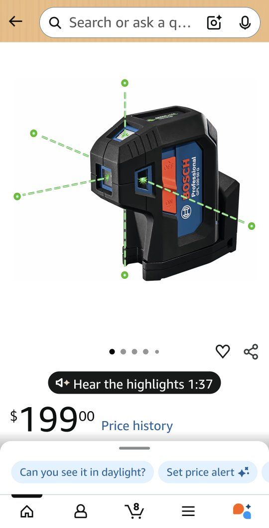 ZelleBosch 125 ft. Green 5-Point Self-Leveling Laser with VisiMax Technology, Integrated MultiPurpose Mount, and Hard Carrying Case.