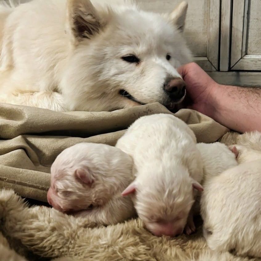 ZelleWe have a beautiful "Frozen" flurry of AKC Samoyed puppies looking for their forever families! They will be ready to go home on May 27th when they are ten weeks old.