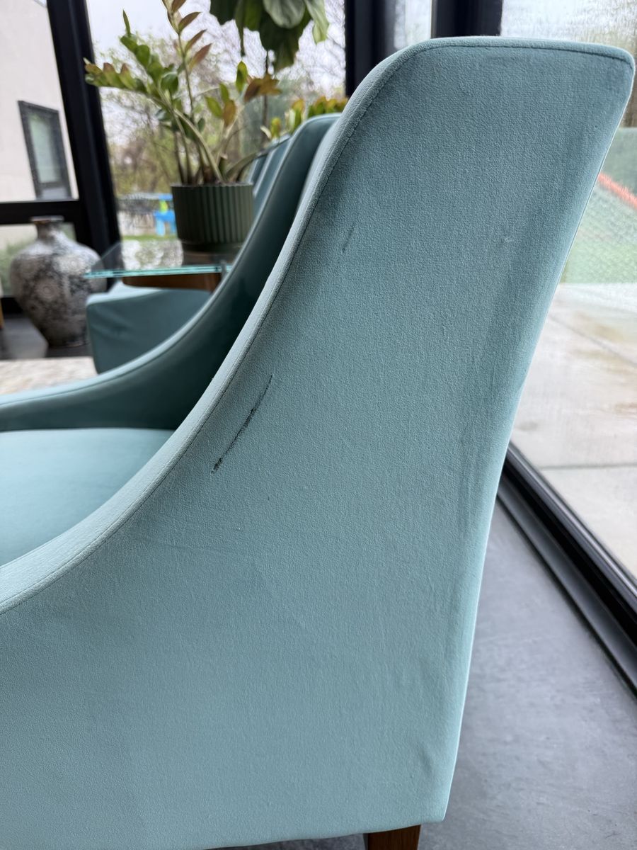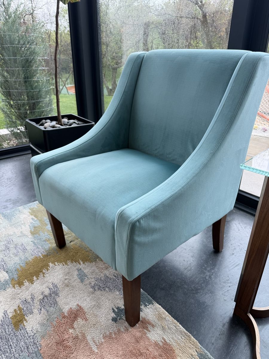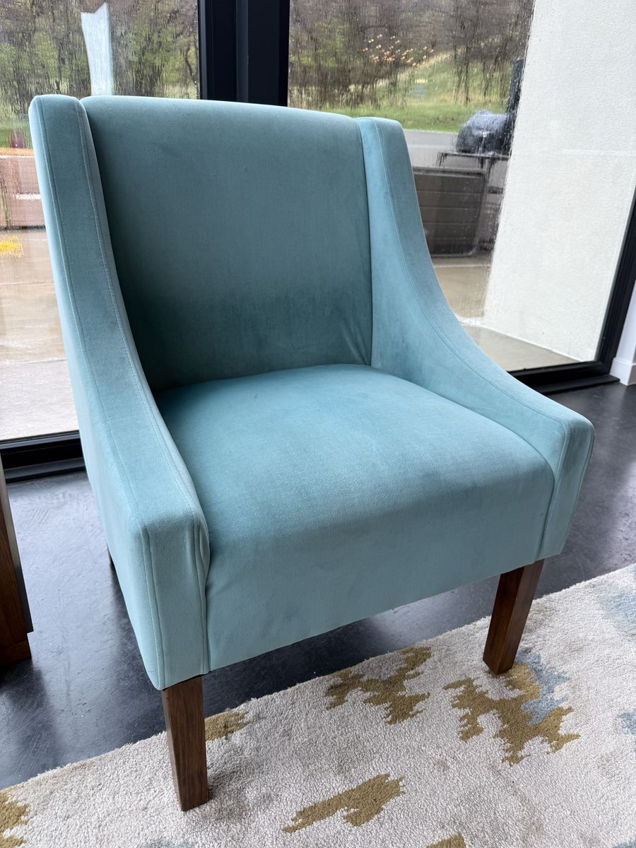 VenmoSoft, comfortable accent chairs perfect for a living or family area. Purchased from Target a few years ago. Decent shape. On the side is one small tear in the fabric (see pics) and has a few little spots that I haven’t tried to get out (also pictured). Asking $20 for the pair. Dimensions: 35” tall, 25” wide, 25” deep