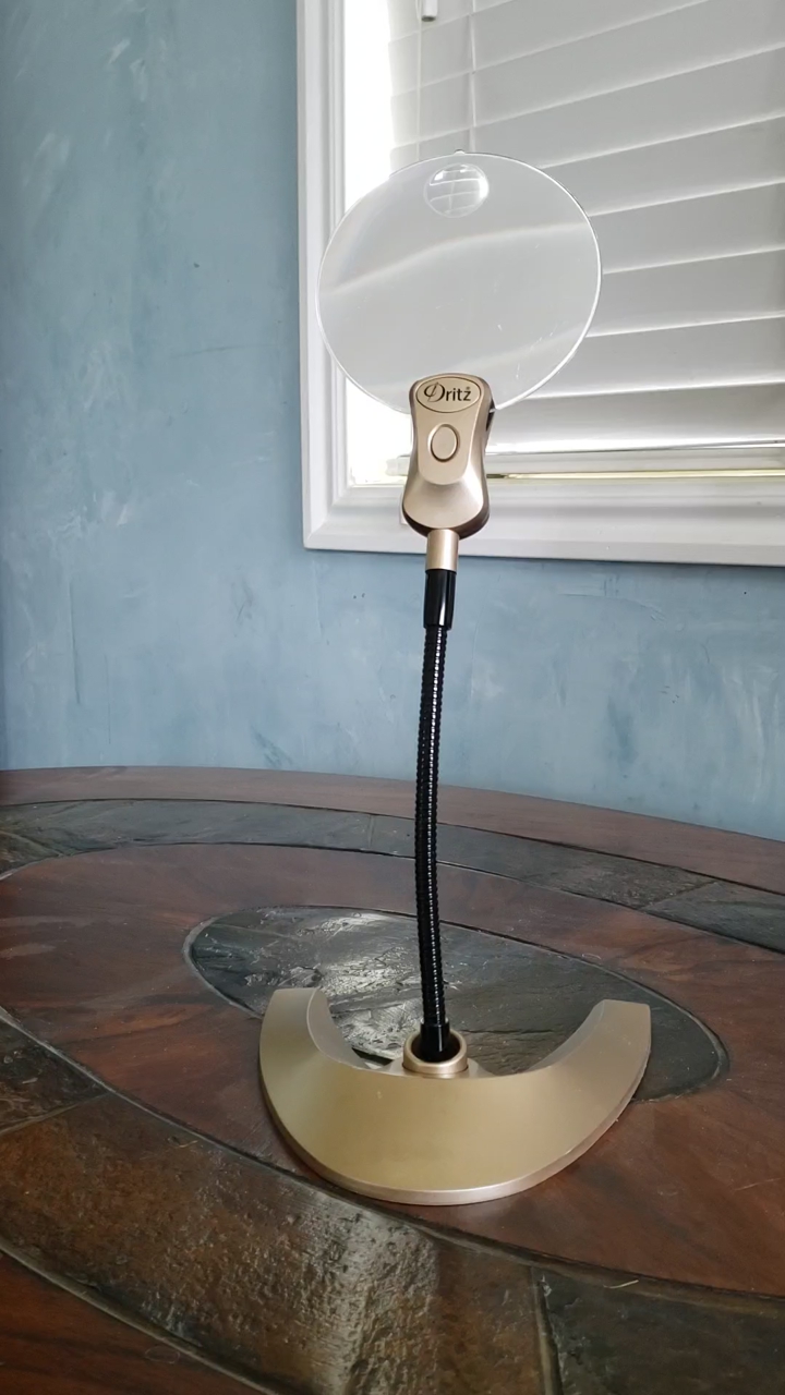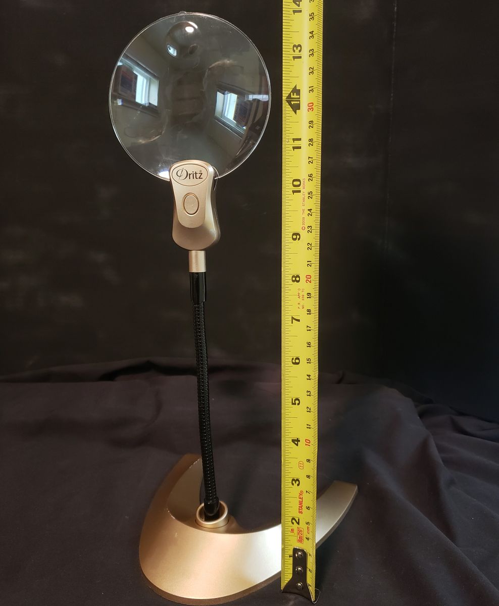 VenmoThis Dritz hands-free magnifying glass is one of those items you never knew you needed, but once you have it you won’t know what you did without it. Flexible gooseneck arm allows comfortable positioning at various angles. Large lens has 2X magnification, but there is a 4X spot lens for extreme close-ups. Bright LED light right under lens provides focused illumination. Weighted horseshoe-style base prevents tipping even when the arm is extended and gives it a cool Star Trek vibe. Use for needlework, sewing, craft work, model building, electronics, manicures, reading or any number of projects. It is in EXCELLENT shape and the four button sell batteries are brand new.