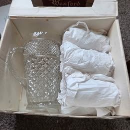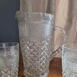 VenmoWexford Vintage Glass Refreshment Set One pitcher and 6 drinking glasses.