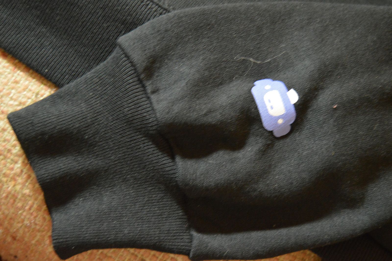 The stickers are unused and the hoodie and pins have never been worn. This is a set any online gamer would love to have.