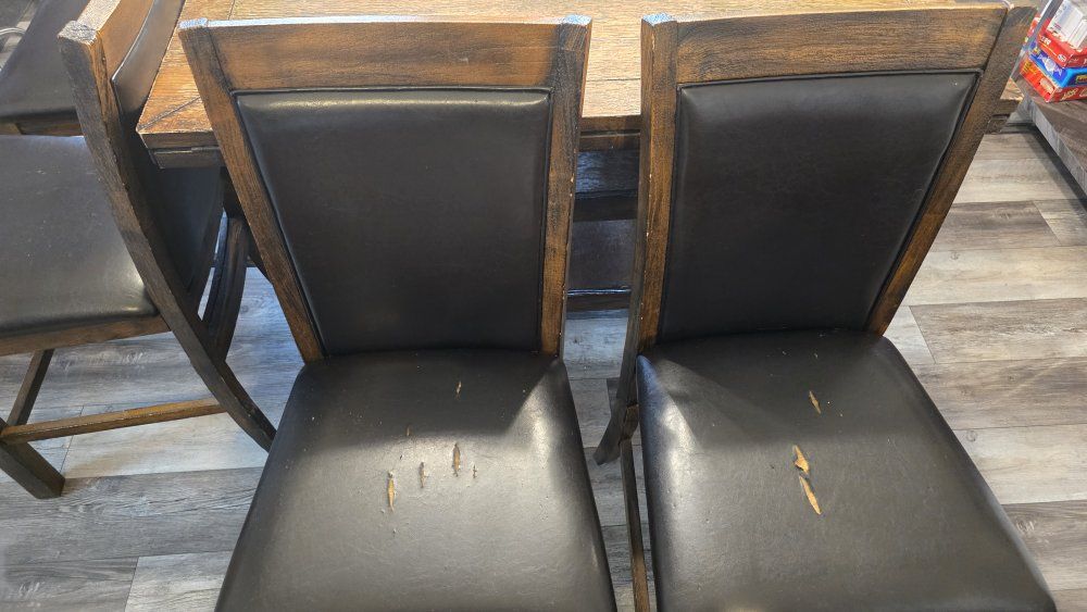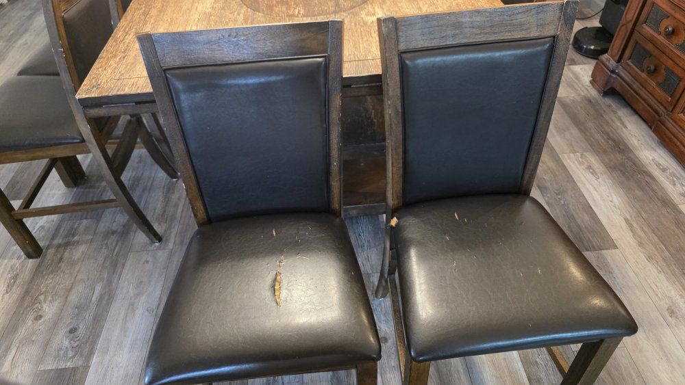 Condition: In great overall condition. The tabletop has light natural wear that blends with the wood grain and gives it a nice rustic/antique character. Chairs are sturdy; a few have minor cosmetic wear on the seats (purely visual).