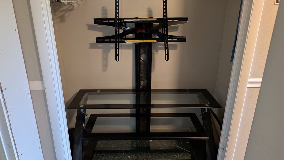 glass TV stand with 3 shelves