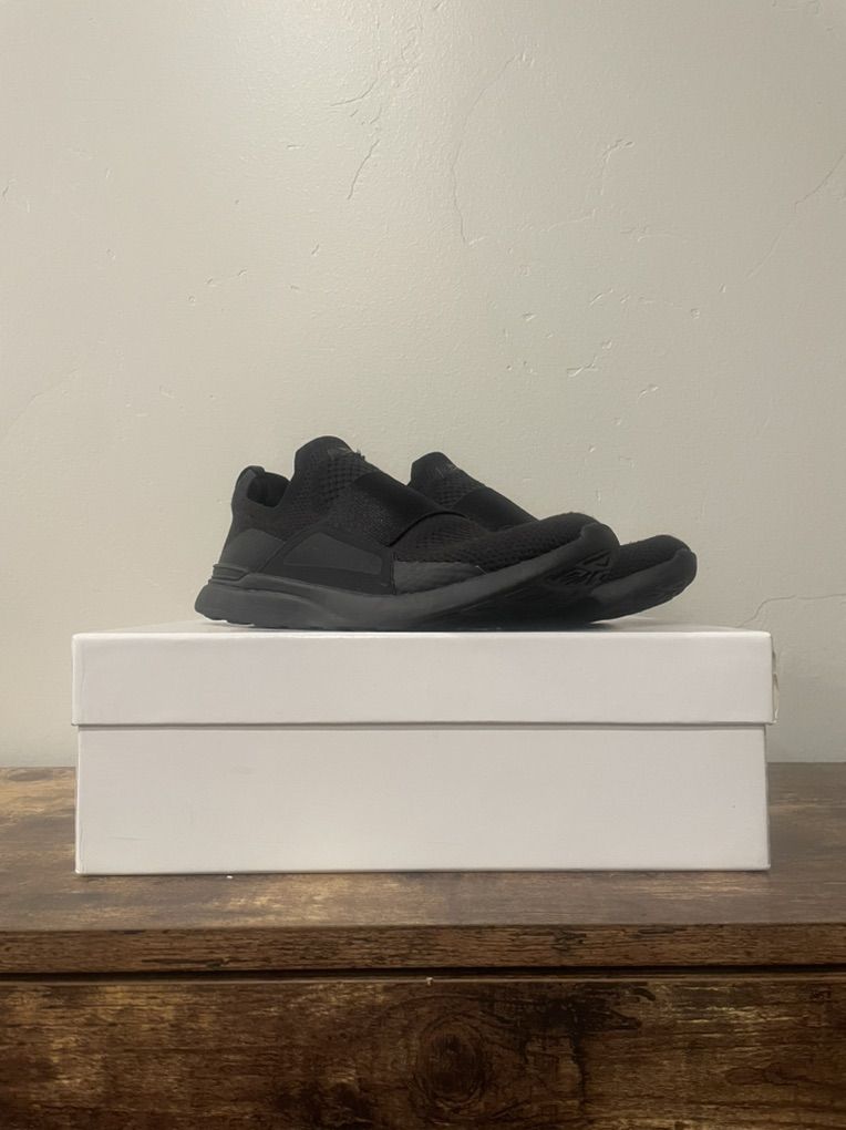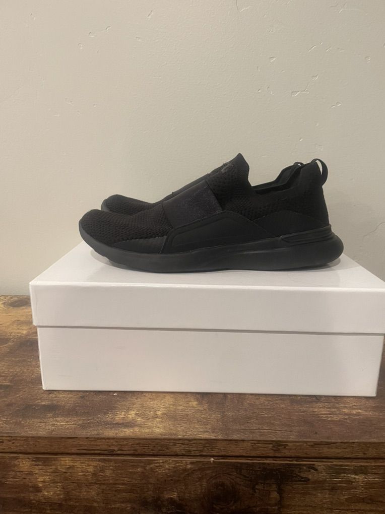 Effortlessly stylish and lightweight, these APL Techloom Bliss sneakers blend performance and comfort. Designed for active lifestyles with a sleek, slip-on design. • Slip-on design for easy wear • Lightweight construction for comfort • Durable rubber outsole • Techloom knit upper for flexibility • Elastic strap for secure fit