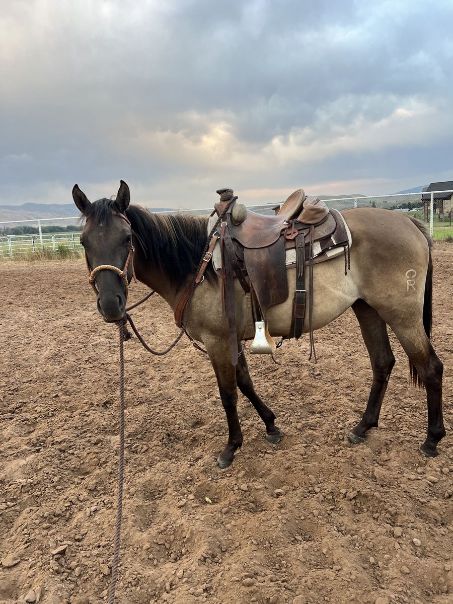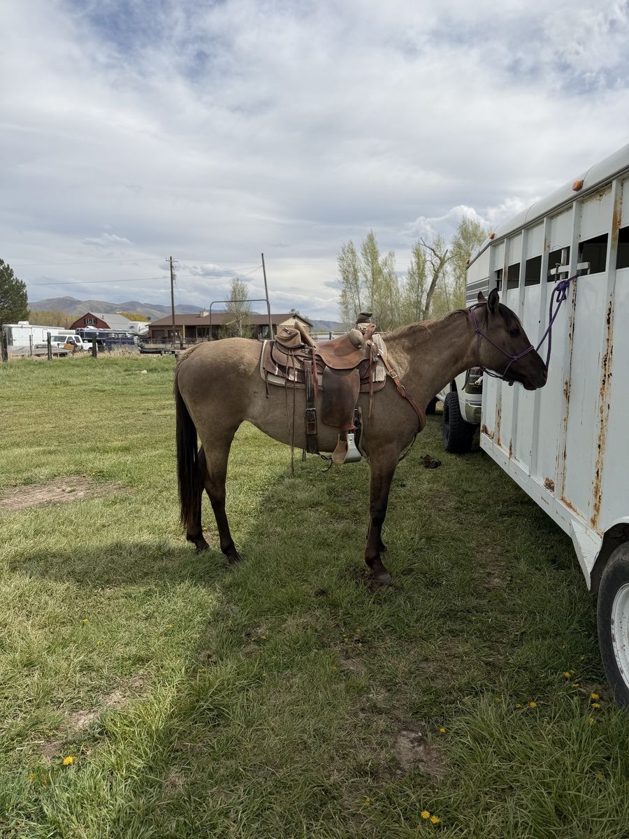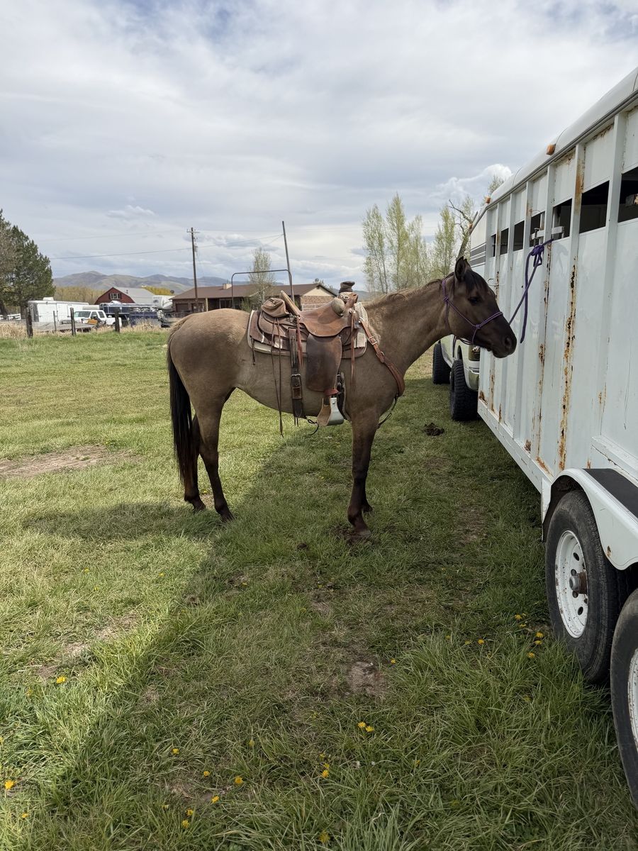 VenmoSuper pretty grulla filly, about 15 hands should get alittle taller, good hard feet, has had a lot of rides put on her the last year. Moving cows, crossing deadfall, streams, mountain riding, coming along really good. Can get alittle buddy sour but should grow out of that, her sire is doc bar bred can send a picture of his papers