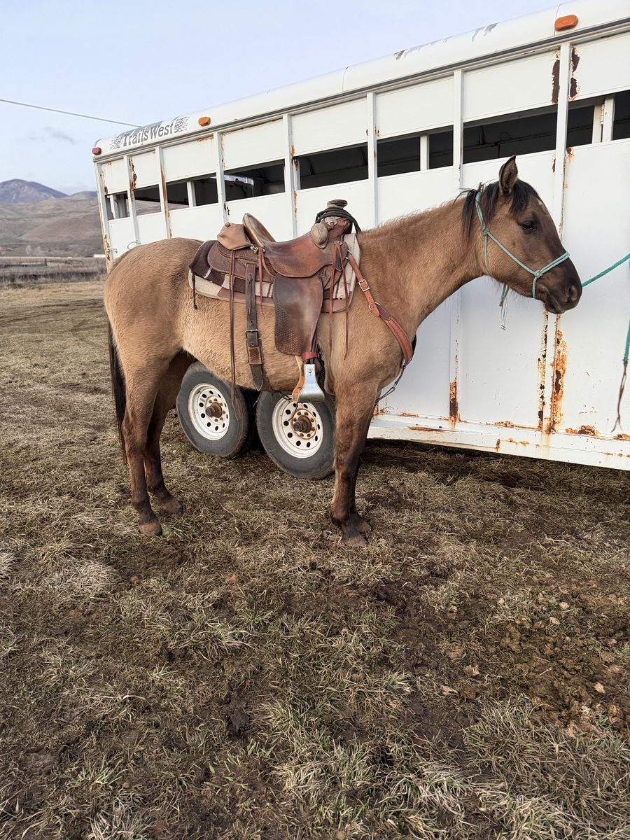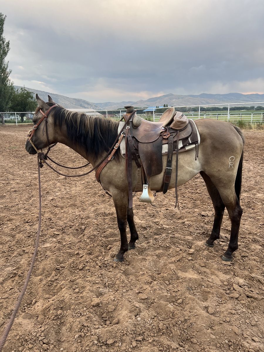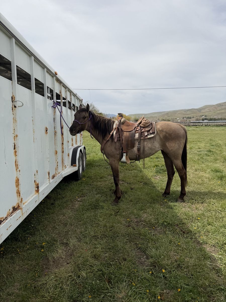 VenmoSuper pretty grulla filly, about 15 hands should get alittle taller, good hard feet, has had a lot of rides put on her the last year. Moving cows, crossing deadfall, streams, mountain riding, coming along really good. Can get alittle buddy sour but should grow out of that, her sire is doc bar bred can send a picture of his papers