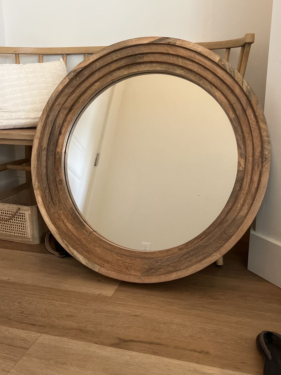 Bought this mirror awhile ago in hopes to use it when my basement was finished, but just don't have a good place for it. Brand new, never been hung. About 27 inches in diameter