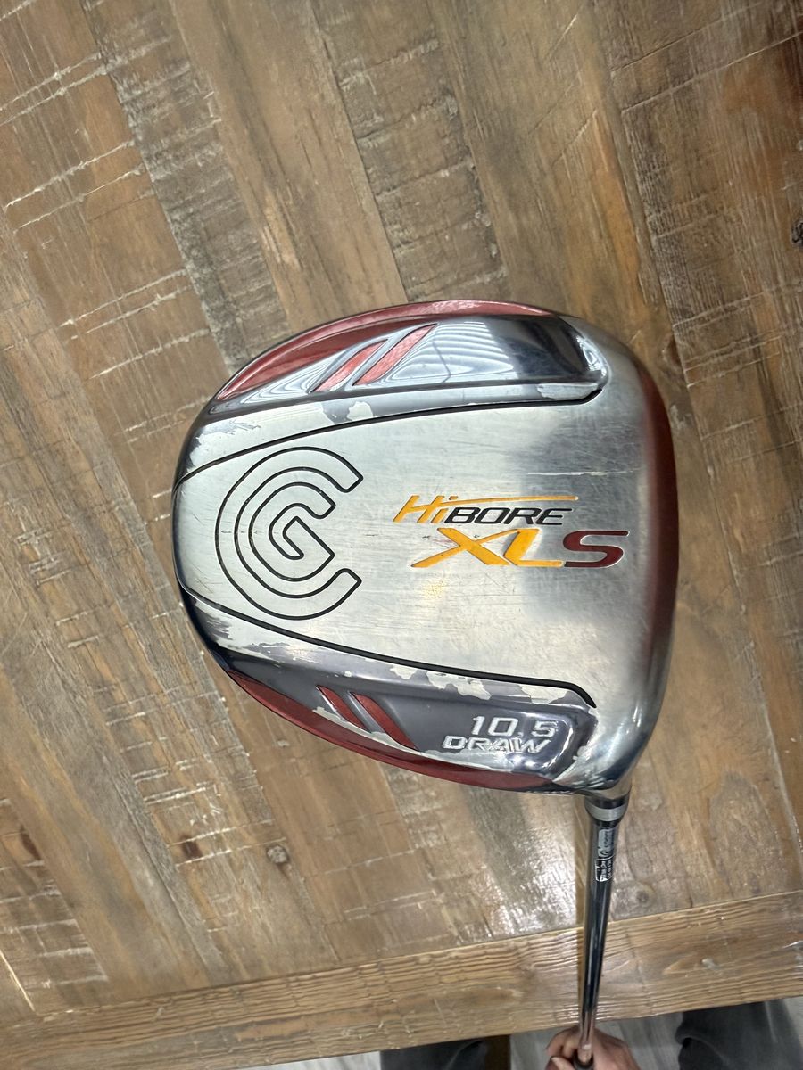 VenmoCleveland Hi Bore XL Draw Biased 10.5 Driver with Stiff Fujikara shaft. I used it for several years. It was my most consistant driver. It virtually eliminated my slice. As I got older, my swing speed slowed down, so I replaced it with a new driver with a regular shaft. Some of the paint on the bottom has worn off but it is still a great driver.