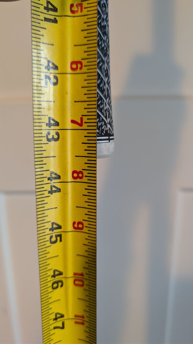 GooglePayI use an aftermarket shaft so don't need this. This is the stock shaft, not the aftermarket 1K Pro version. Standard sized grip. 43.5" from tip of adapter to top of grip.