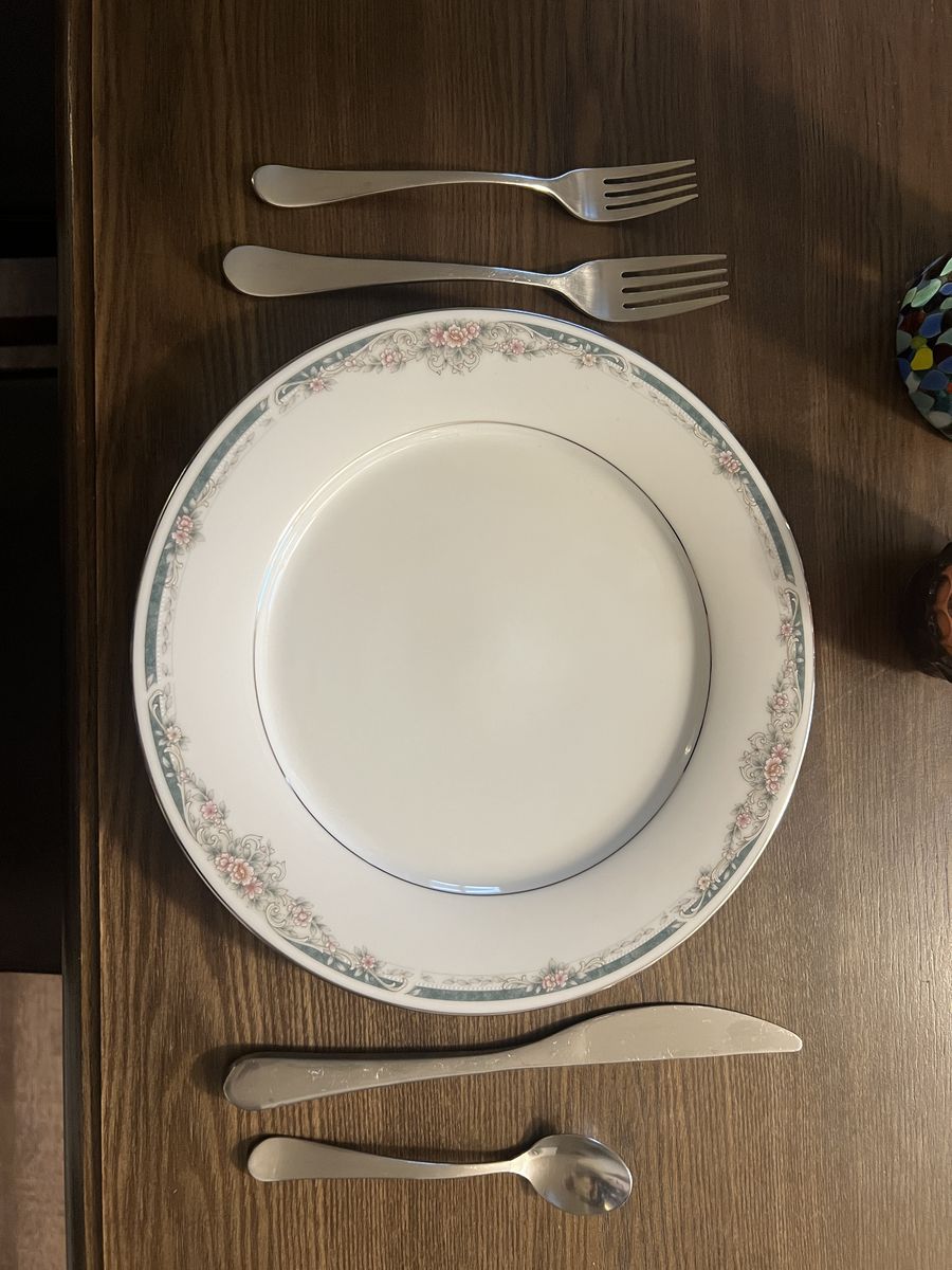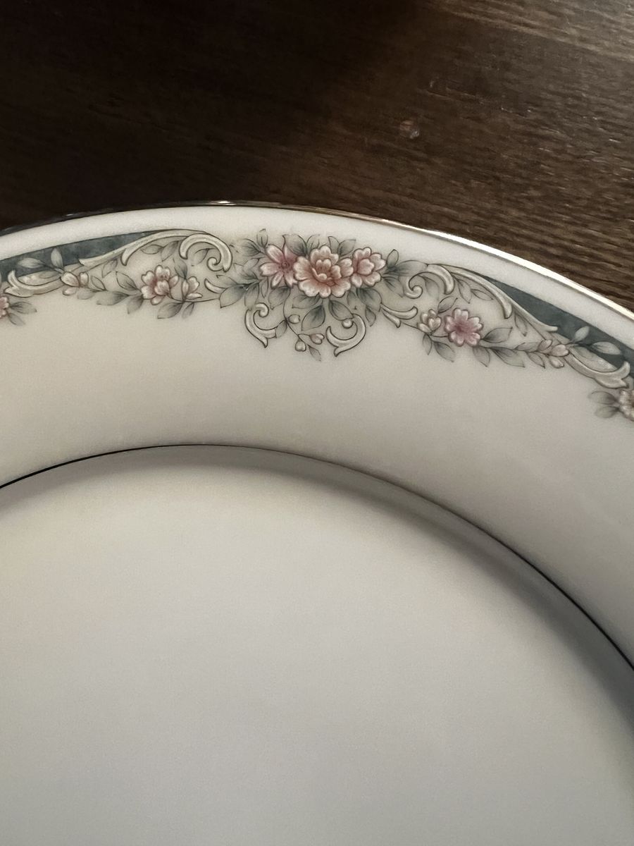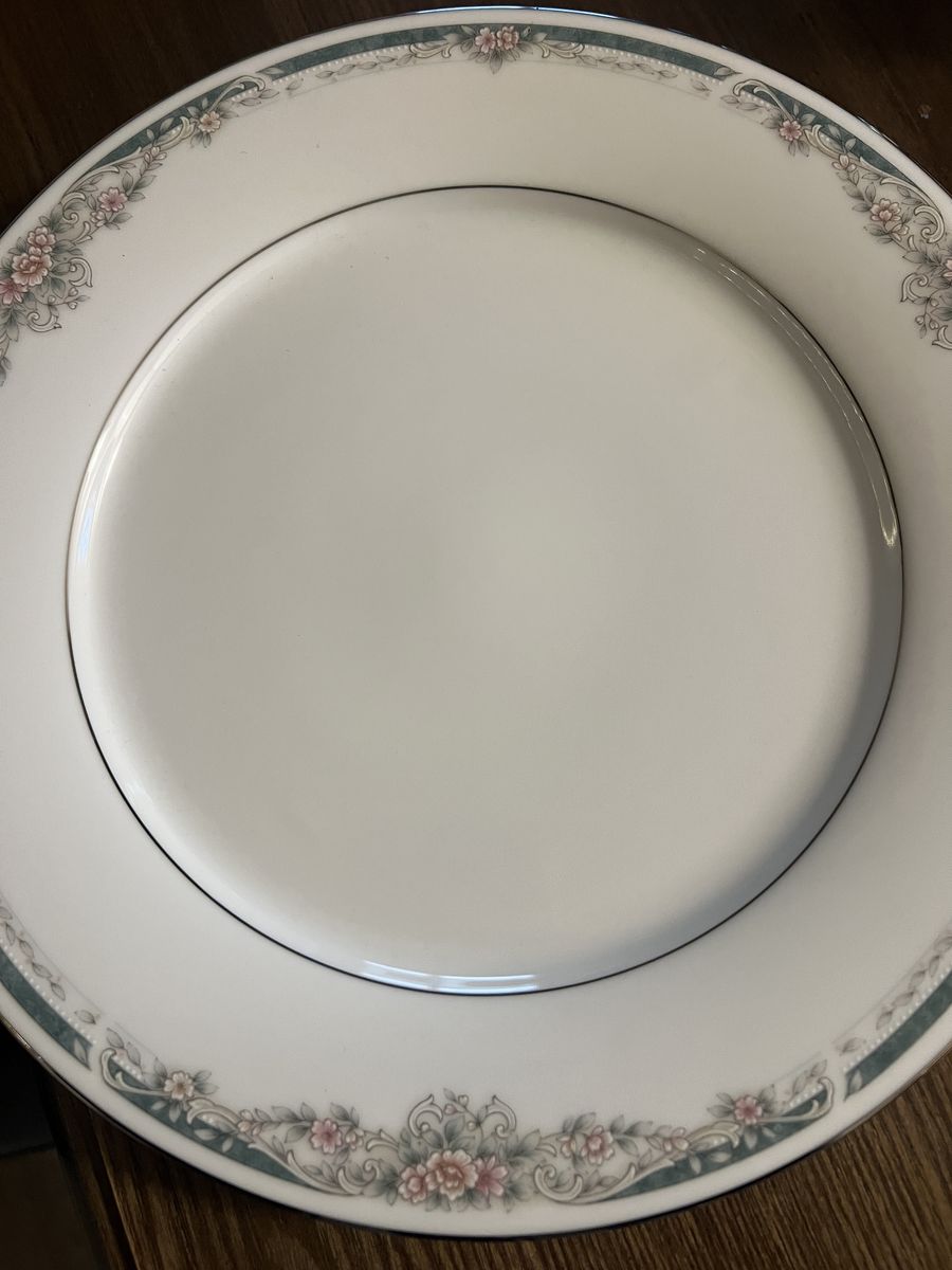 VenmoNoritake Legendary is a durable, high-quality line of porcelain fine china often featuring elegant gold or platinum trim, designed for both formal and daily use. Platinum trimmed pattern featuring delicate floral design. 12 plates of all the same 12" size.