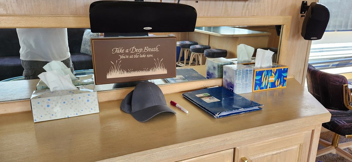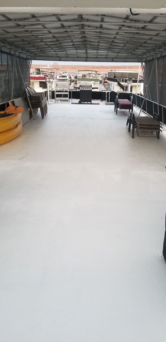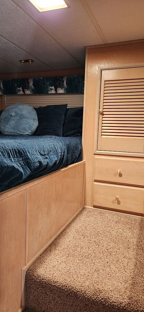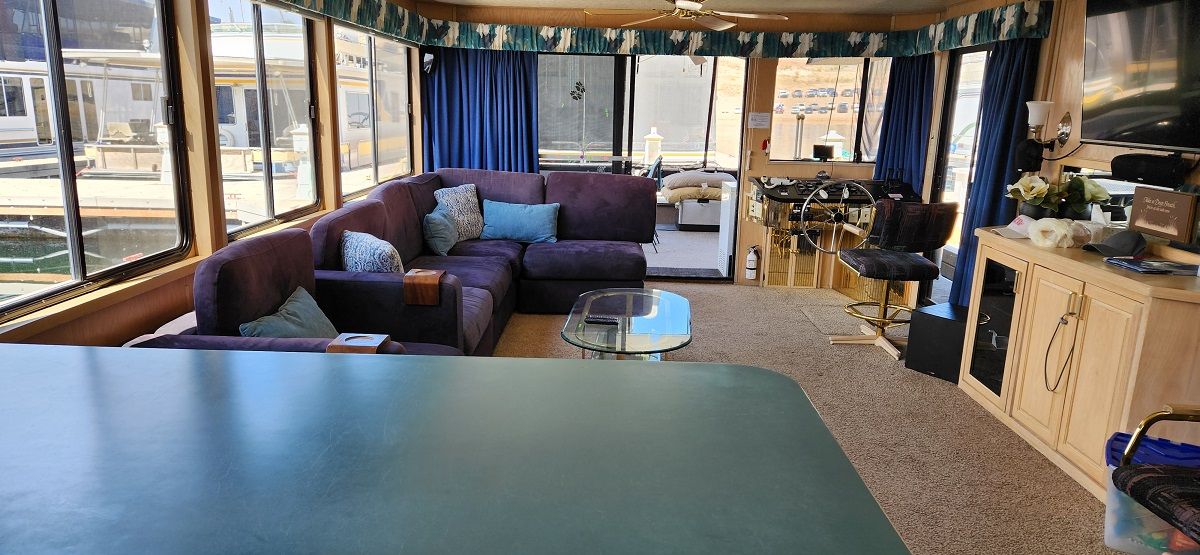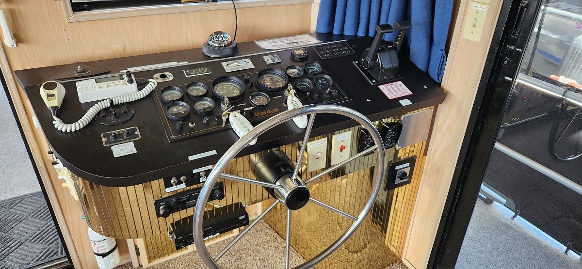 Other Equipment: Full all electric galley. Dinette, stove, oven, microwave, new LG refrigerator, (2) ice makers, coffee maker, blender, trash compactor, washer and dryer, lake water UV system,(which means unlimited water) and 180 gallons of fresh water tanks, deep freezer, gas BBQ grill on top, and a new addition, a 4 burner Blackstone.