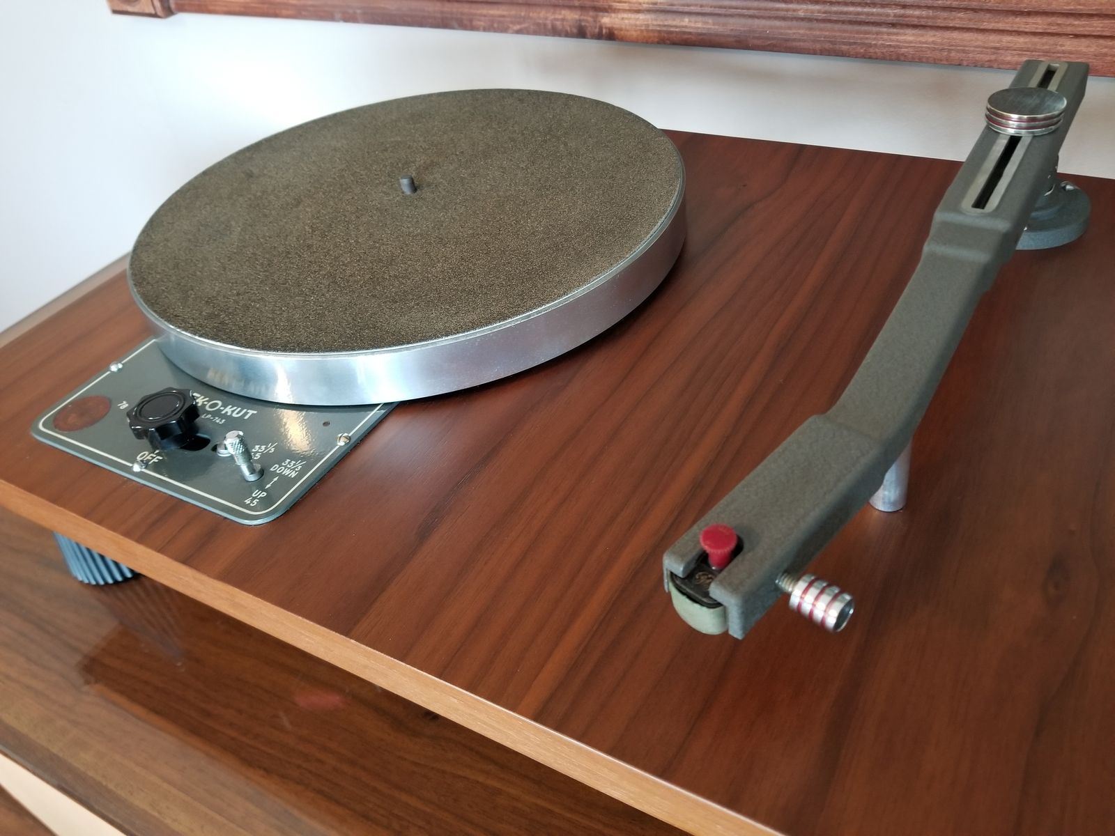This is a beautiful deck. Dating to 1955 or 56, it sat for around 45 years before I bought it. I've cleaned it up and gotten the motor running but I'm stumped at the speed switching and given I never listen to vinyl I'm ready to move on. The tonearm is a Clarkstan 212 16" transcription arm. It's wired for mono but I got no sound through it. The plinth was hammered so I put it on this walnut board. I kept the original and buyer is welcome to it.