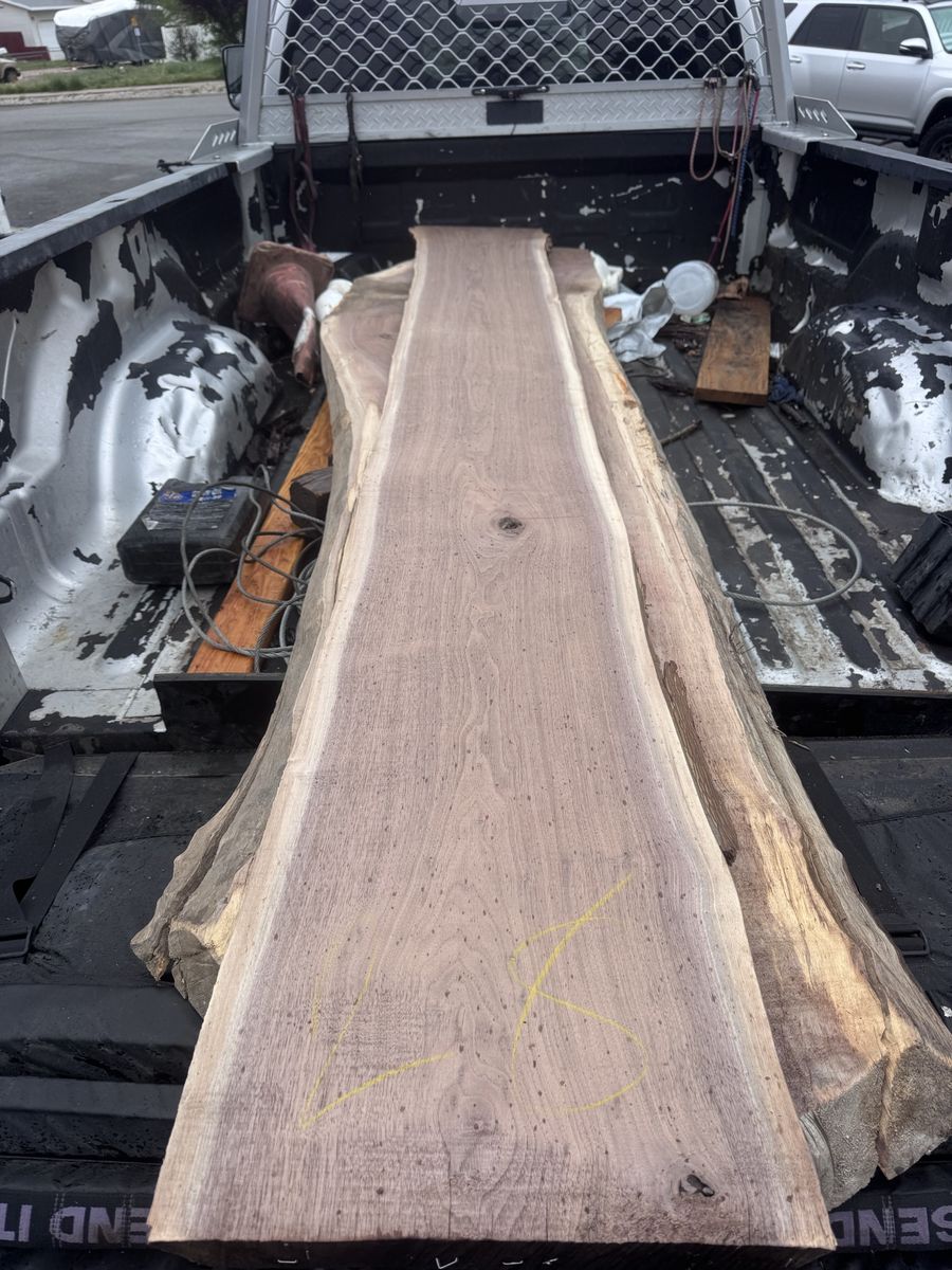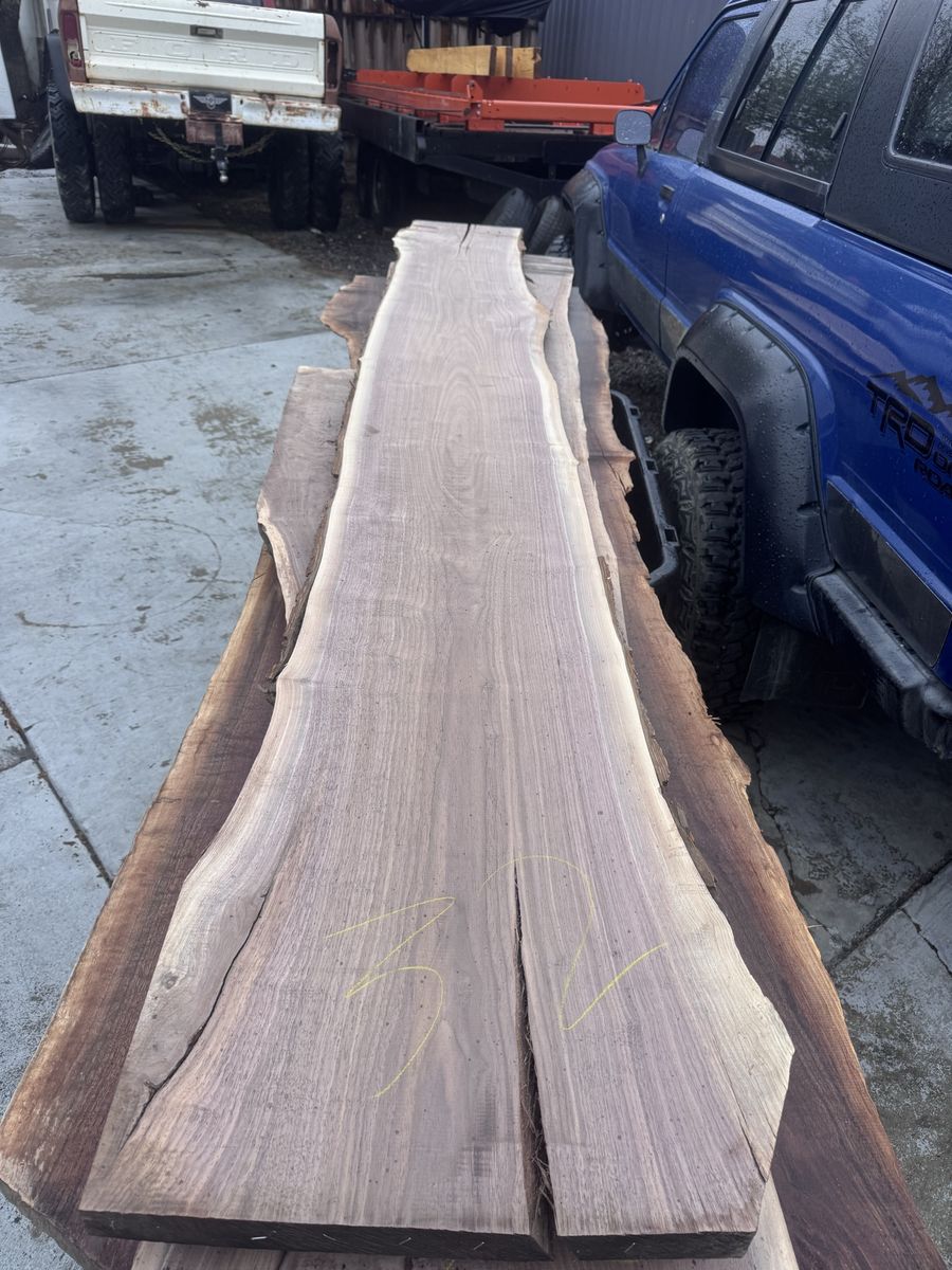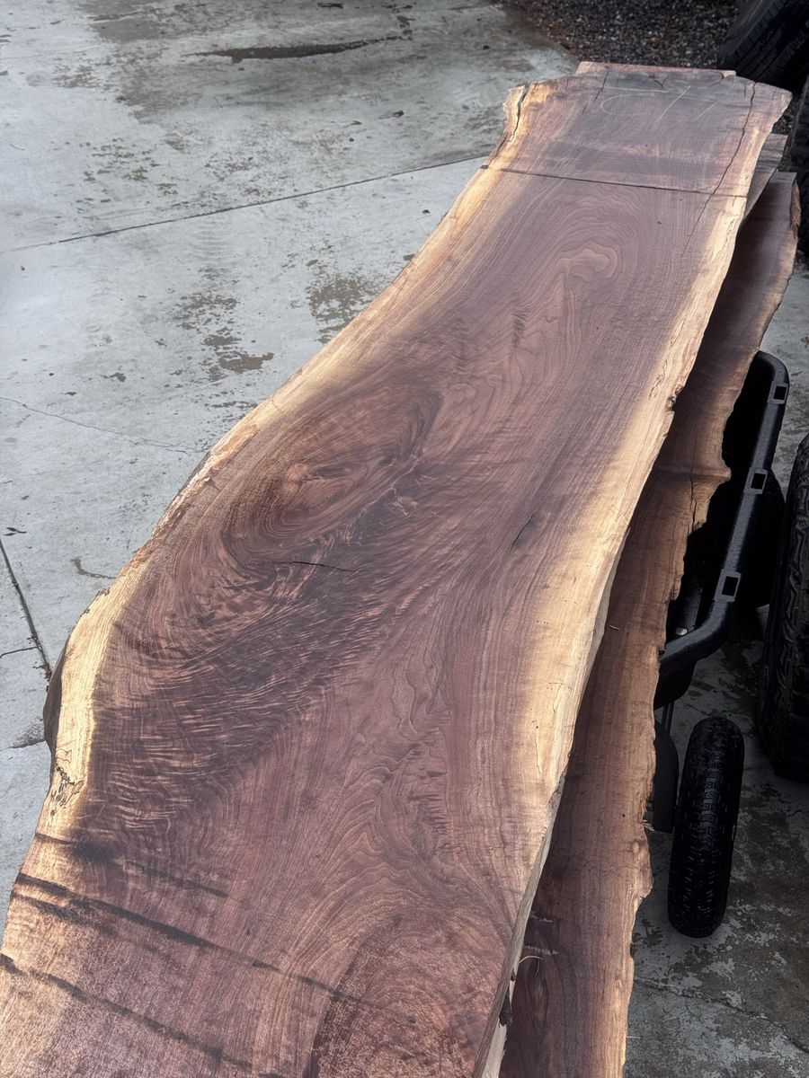 ZelleKiln dried surfaced / flattened, Black walnut Most are around 10’ long and 16-32” wide , 2” thick 20$ per board foot. Text for more info Thanks