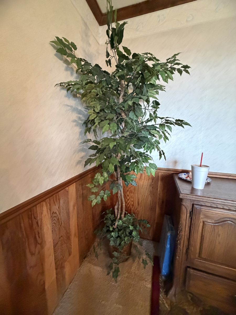 ZelleThe weeping fig tree is 7 feet tall and has a beautiful basket at the base. It is an excellent corner tree to add color and height to any room.