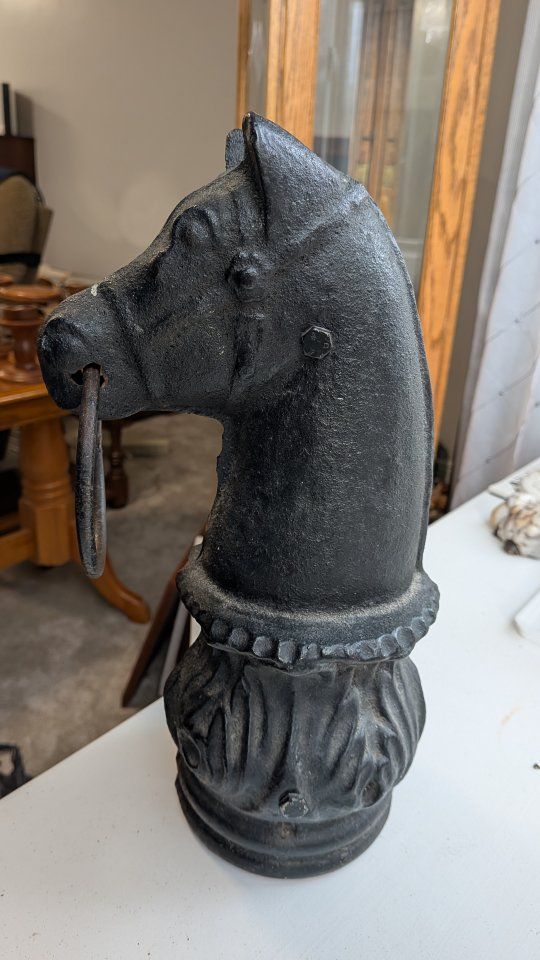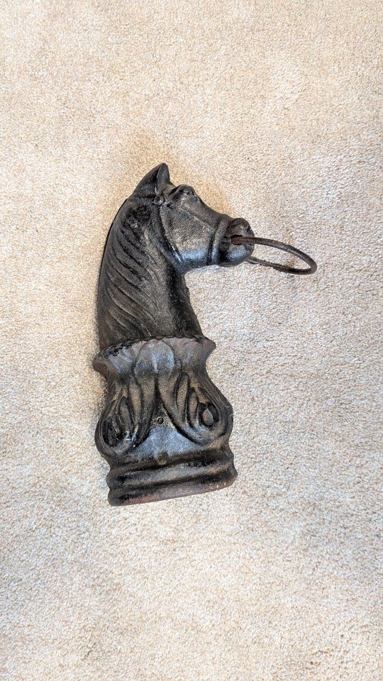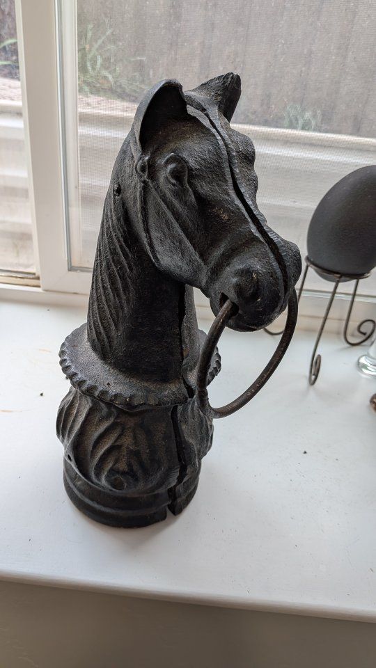 vintage iron hitching Post topper with horse Head design