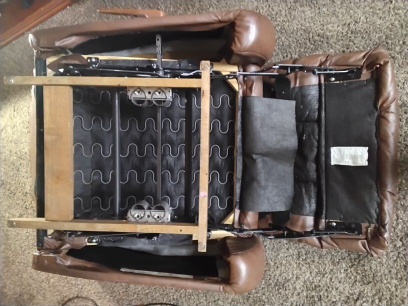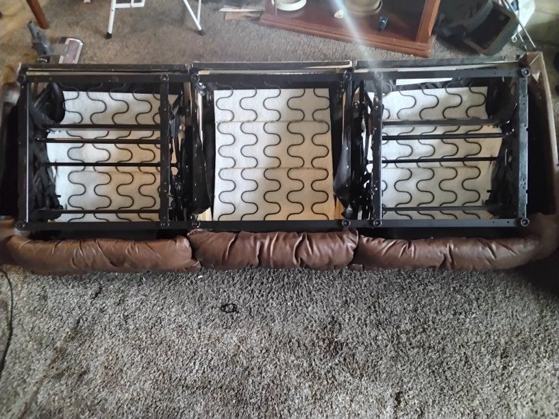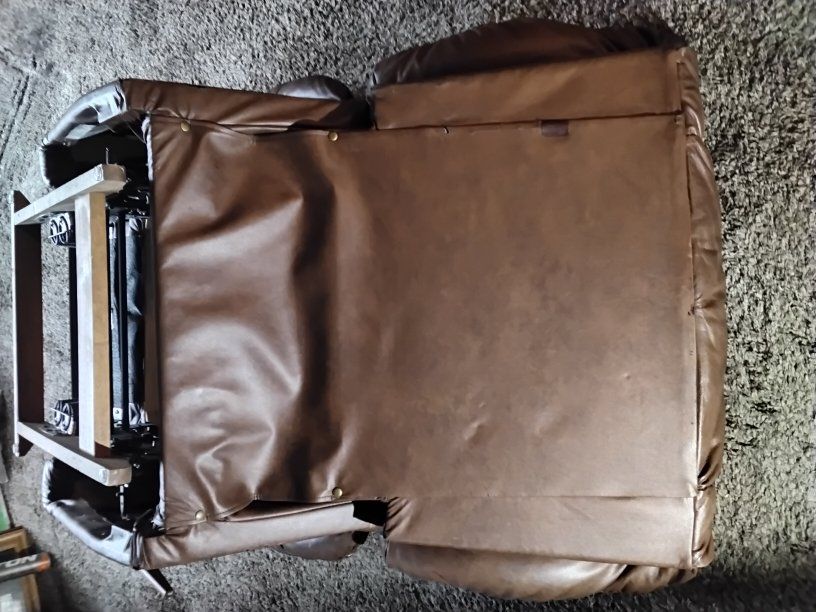 Selling a high-quality leather reclining set (originally $1,750). This is "Best Chairs Inc." brand—very sturdy with solid hardwood frames and heavy-duty steel mechanisms. Features: Dual Reclining Sofa: The two ends recline for maximum comfort; the center seat is stationary. Matching Rocking Recliner: Large, overstuffed matching chair. Easy Move-Out: Items are on the ground floor right inside the front door. No stairs or elevators! Easy to back a truck right up. Condition: Clean and from a smoke-free home (no funky smells) Mechanisms work perfectly. A few minor cosmetic tape repairs on the back/arm (invisible if against a wall) and two missing buttons on one side.