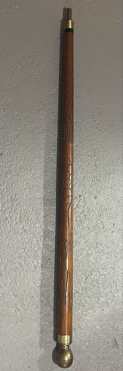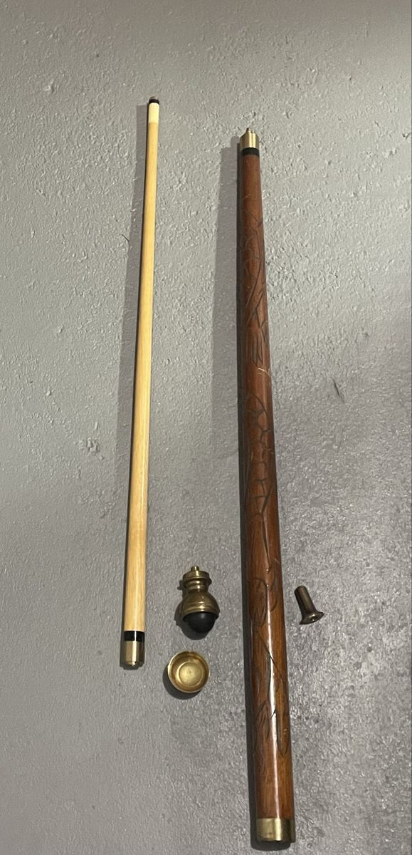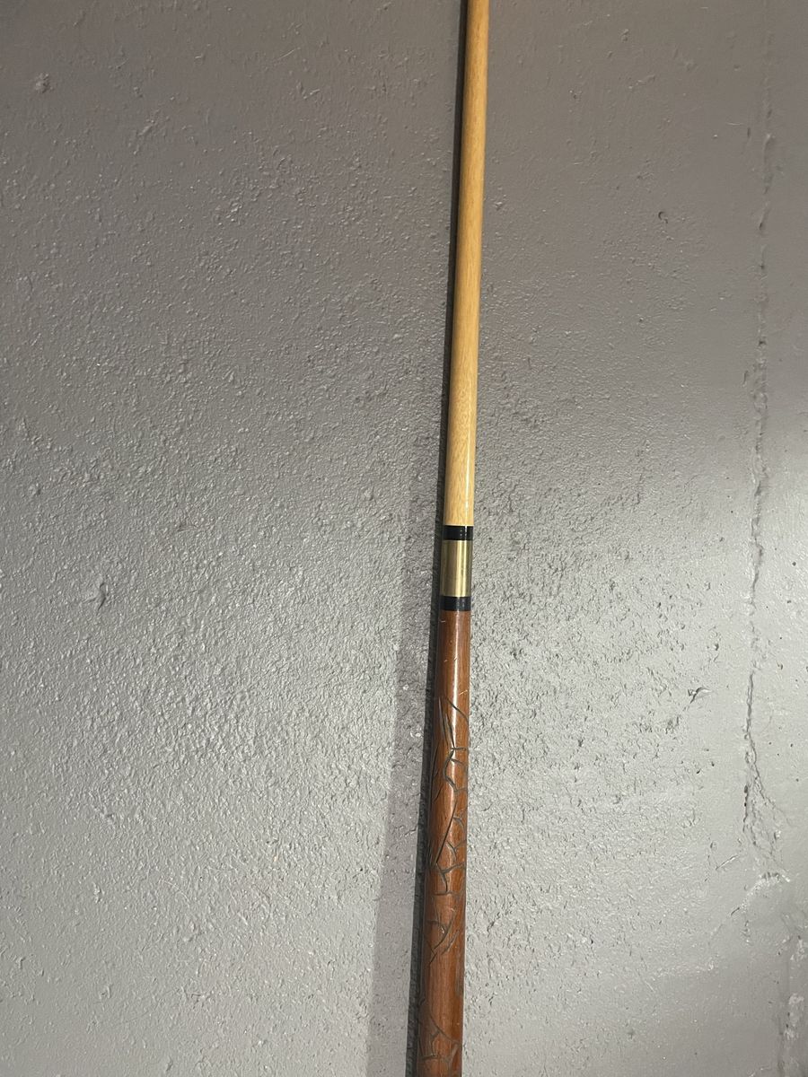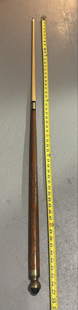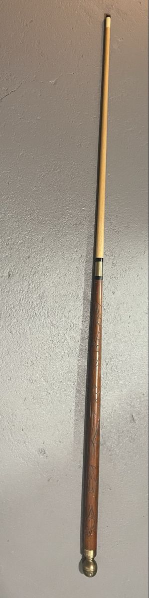 ZelleVintage 1970’s Pool cue that converts to a cane. Assembles easily/quickly from a 33” cane into a 57” pool cue. Made of wood & brass components. In good condition. Asking 55.00$. Please text for further info. Thank you