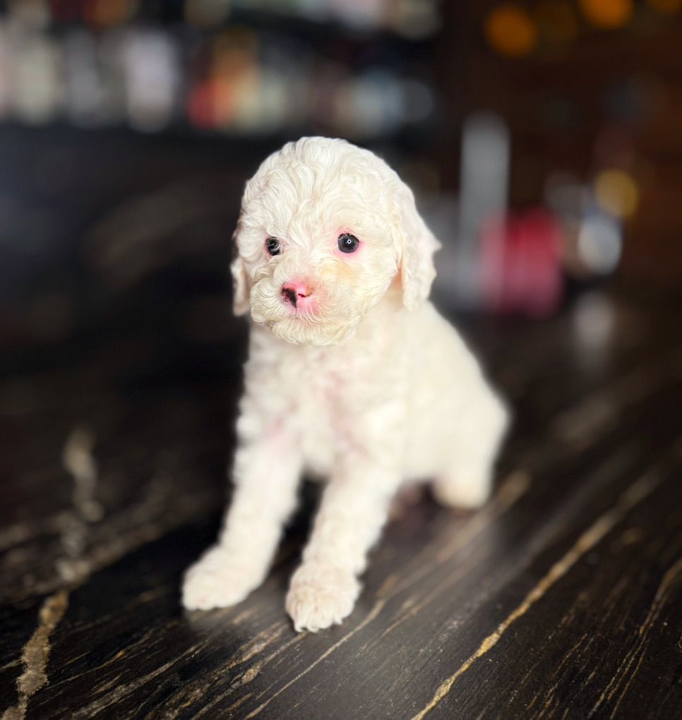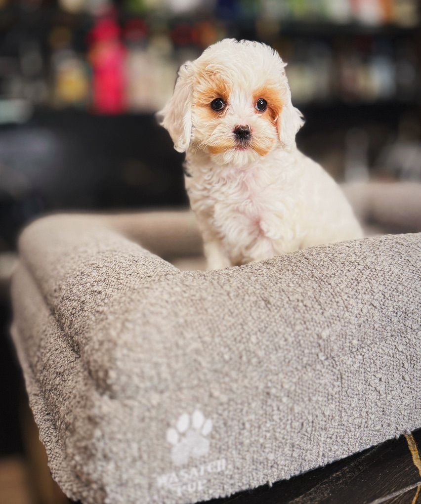 Snow looks a tiny lamb! She is so cute! Where you purchase your new furry pet matters! At wasatchpup we have been creating the most amazing family pets for over a decade! So much goes into each puppy to make sure they are trusting, confident, calm dogs! We have never had a sick puppy or a puppy returned! They will not shed at all! Both parents have beautiful temperaments and health tested!