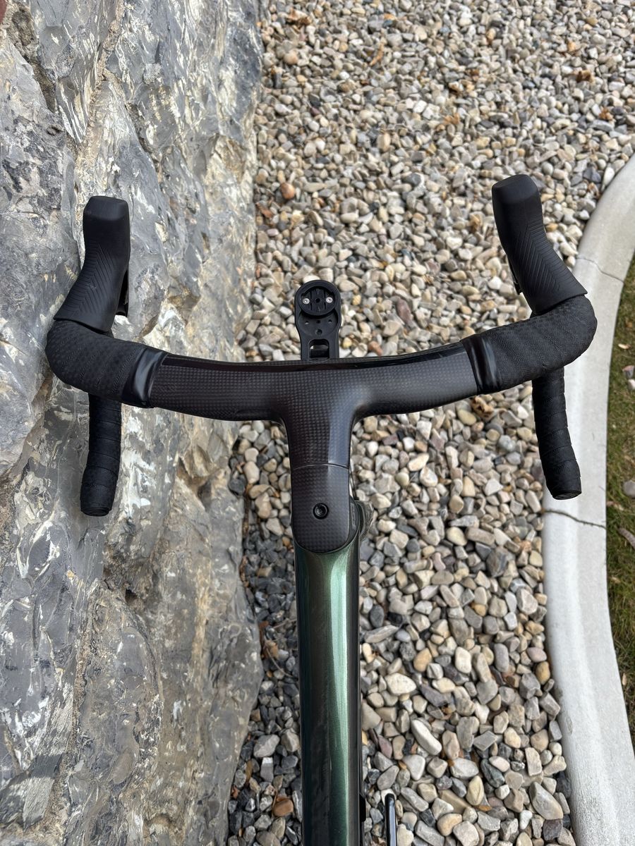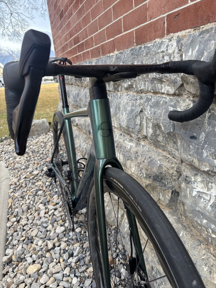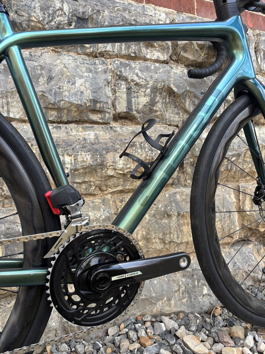 56cm Frame Sram force crank set Sram force chain Sram rival shifters and brakes FSA vision integrated bar 42x100mm Maxxis high road 32cc tires (tubeless) Carbon seatpost and saddle Carbon bottle cages Light bicycle aero wheelset