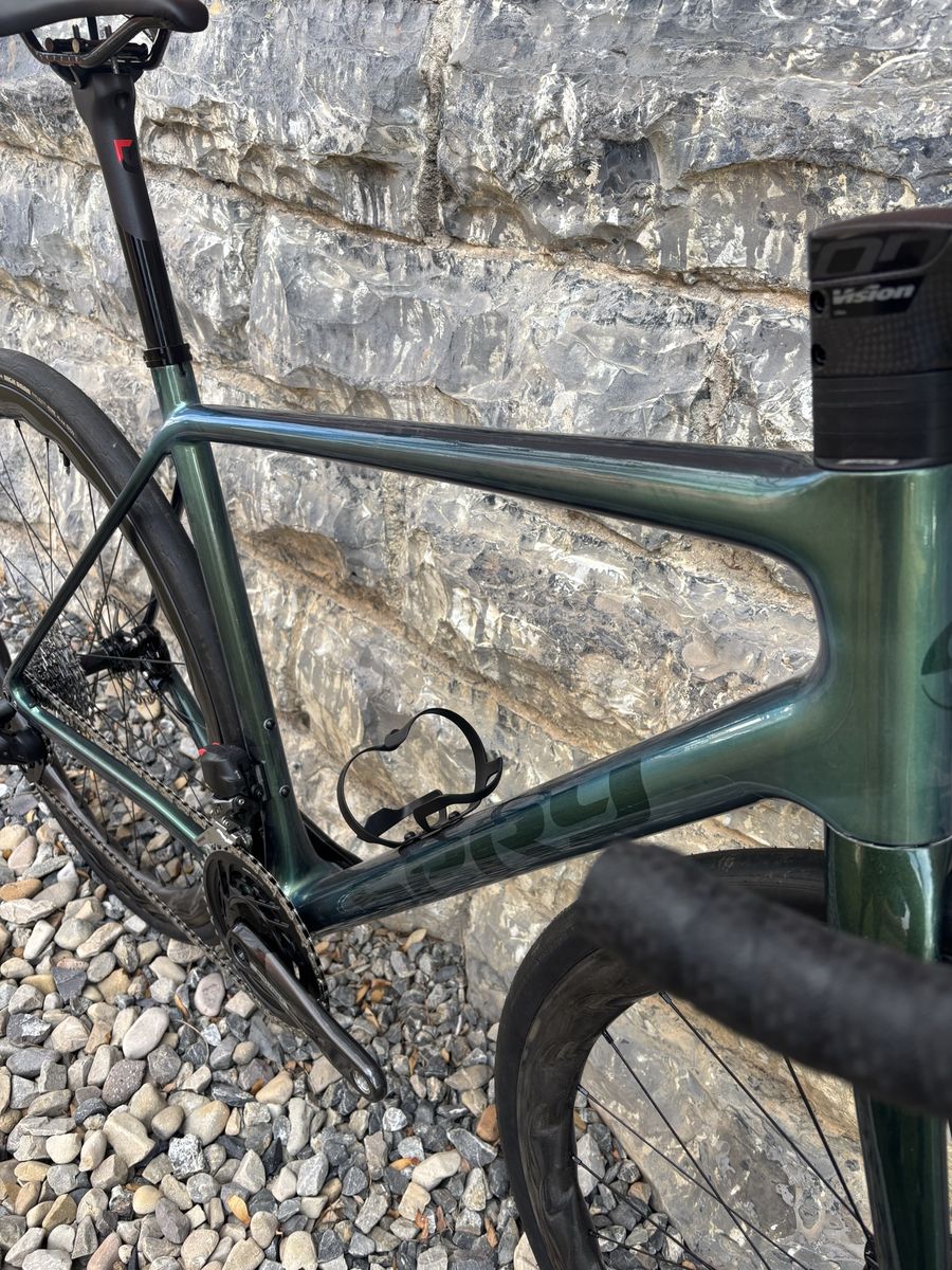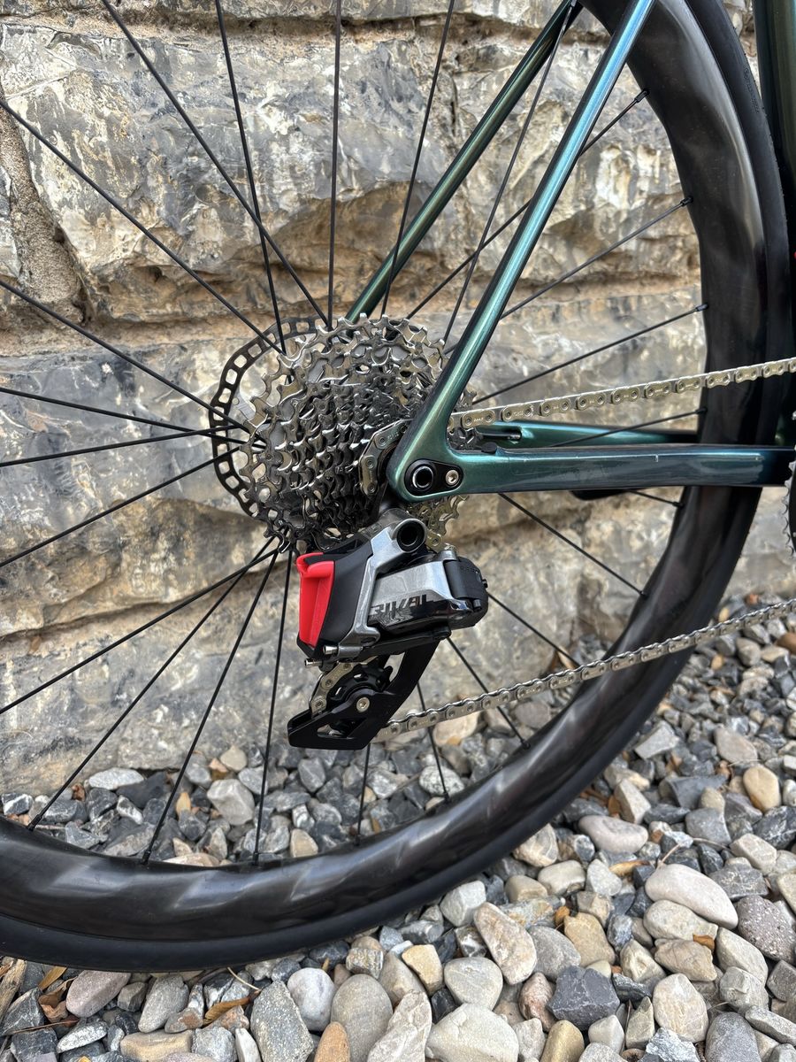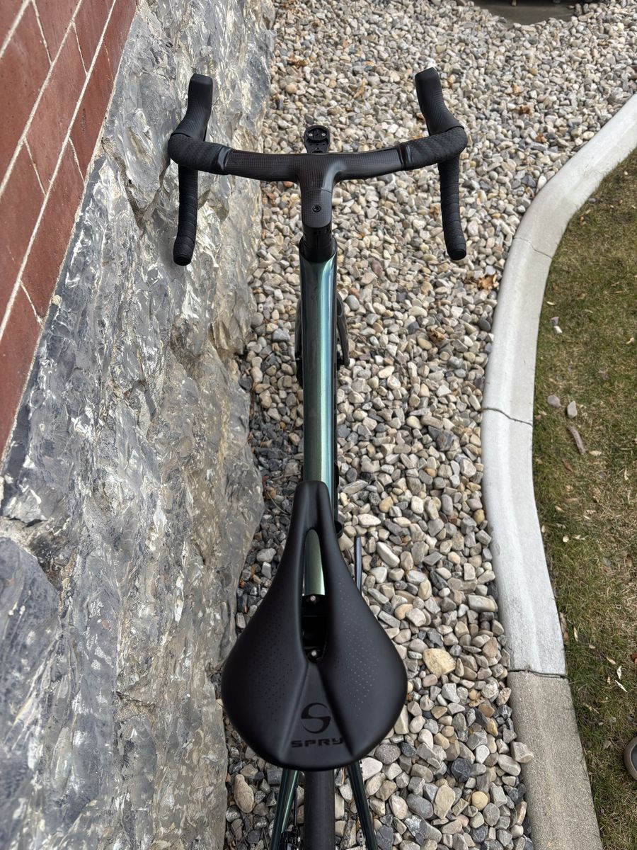 56cm Frame Sram force crank set Sram force chain Sram rival shifters and brakes FSA vision integrated bar 42x100mm Maxxis high road 32cc tires (tubeless) Carbon seatpost and saddle Carbon bottle cages Light bicycle aero wheelset