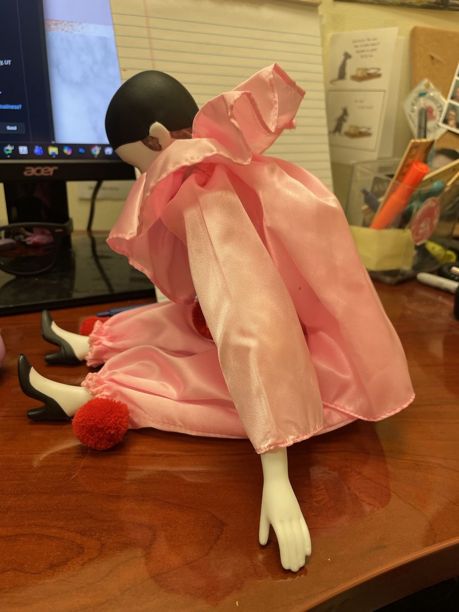 ApplePayPink Clown, has a small blue marker stain on its shirt that may come out if treated. Priced lower due to the stain. Other than that, pretty good condition for being being around a while!