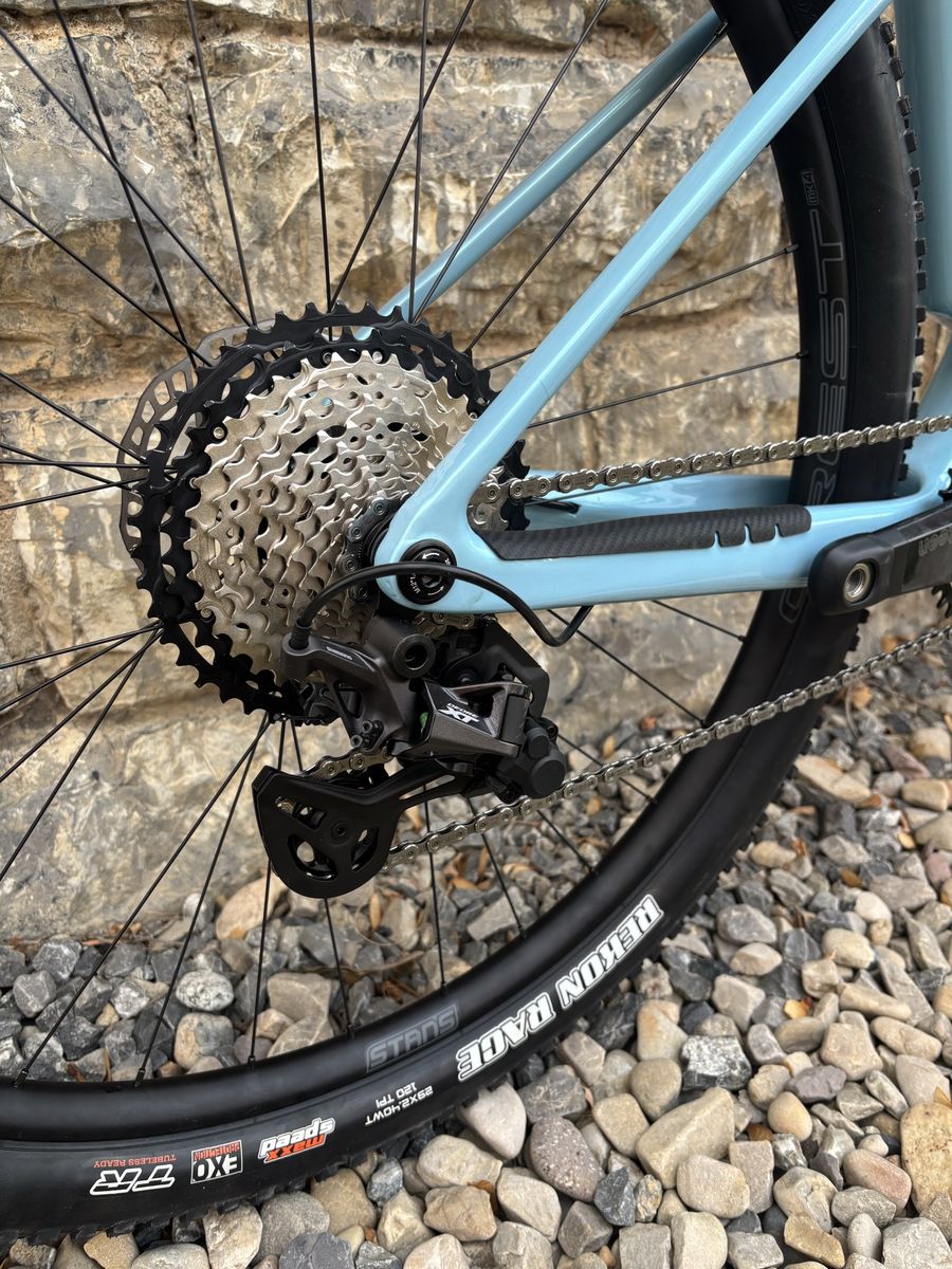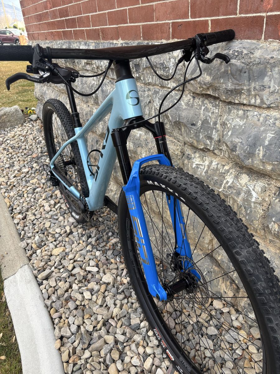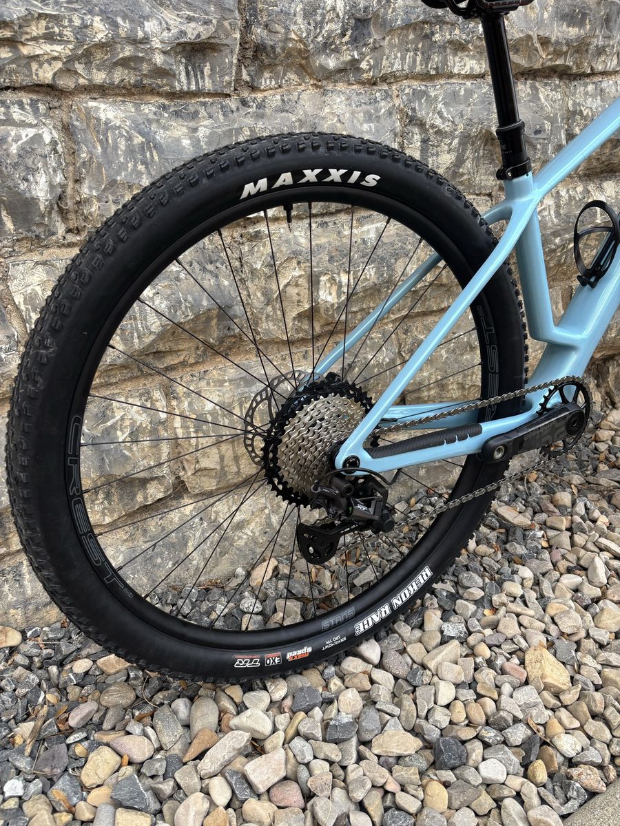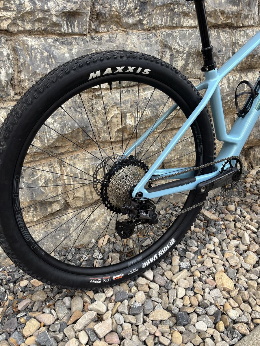 Medium frame Stan’s MK4 alloy wheelset Rekon race 2.4 Frame protection E*thirteen carbon crankset Rock Shock Sid SL 100mm fork XT groupset Interested handle bar Magura trail sport brakes One up 120mm dropper post Carbon Saddle