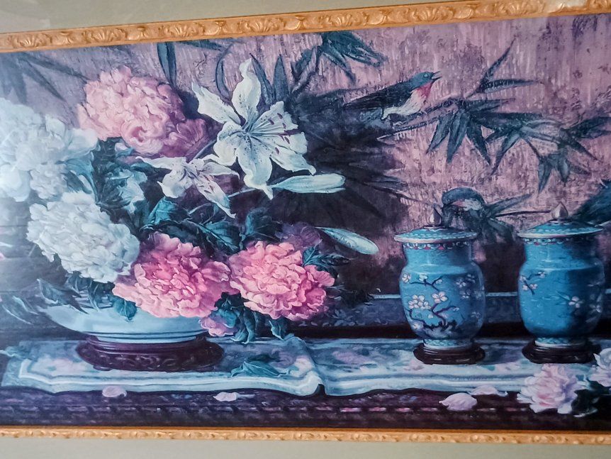 VenmoBeautiful large still life print in ornate frame. Measures 42" wide and 30.25" tall. Smoke and pet free home