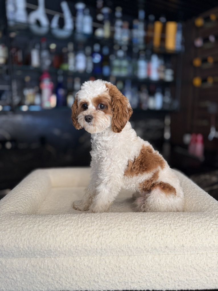 ApplePayChopper is the most beautiful Cavapoo stud! His fur is like silk! He doesn’t shed and handle the perfect deep red Blenheim markings! He has a short snout and perfect conformation! He is 8 pounds of pure love. He is very confident and loves everyone! He loves cats and other dogs! His charming personality and health traits will pass down to his babies! He would be a perfect stud for poodles Golden’s doodles cavapoos and really any dog!