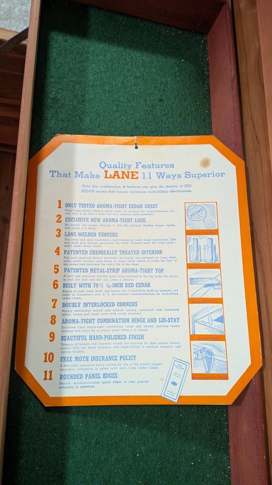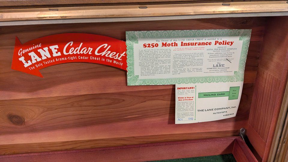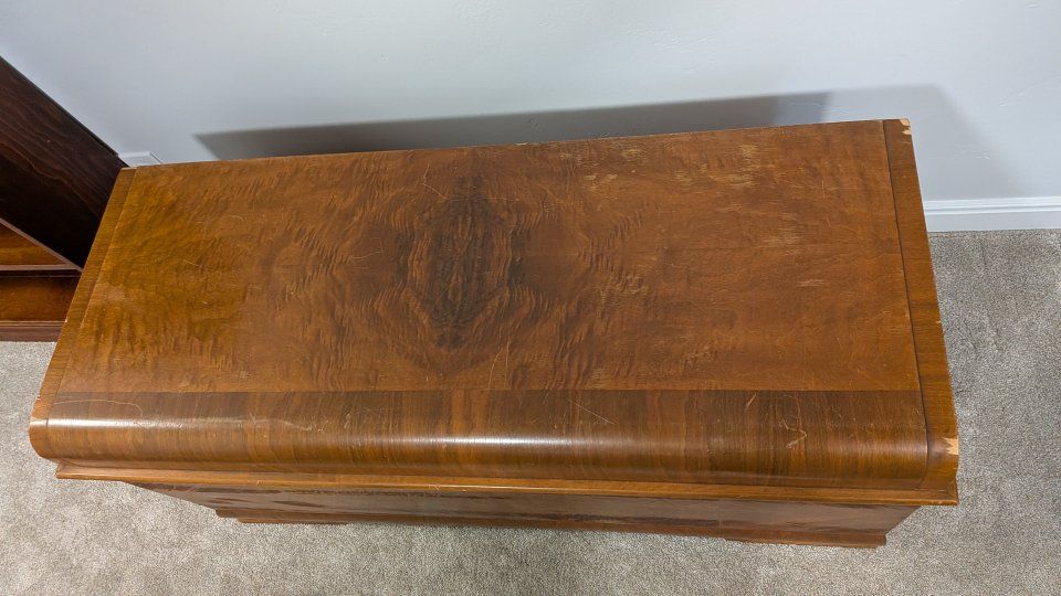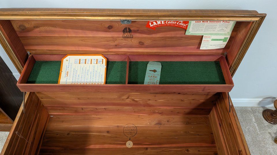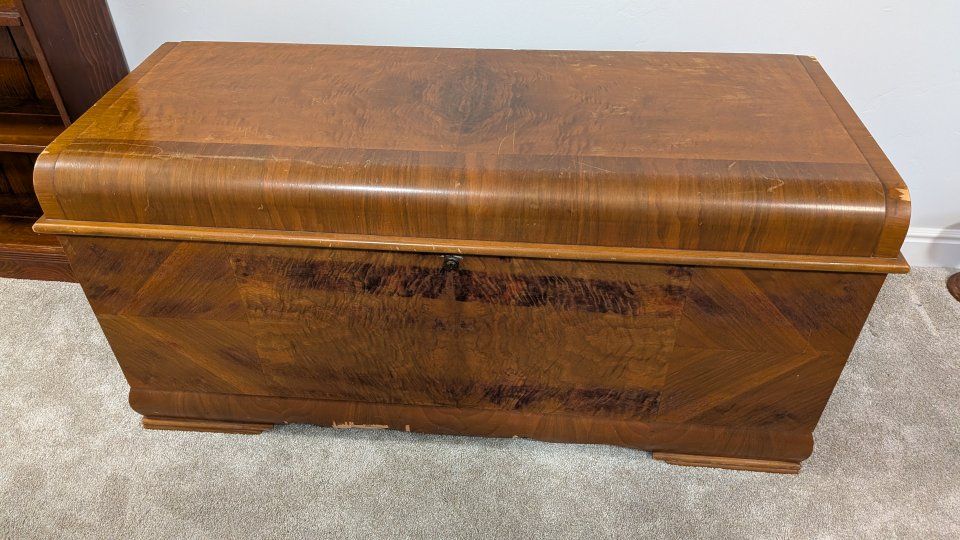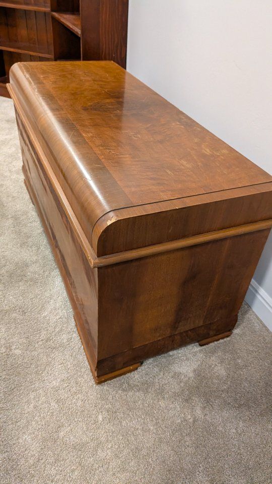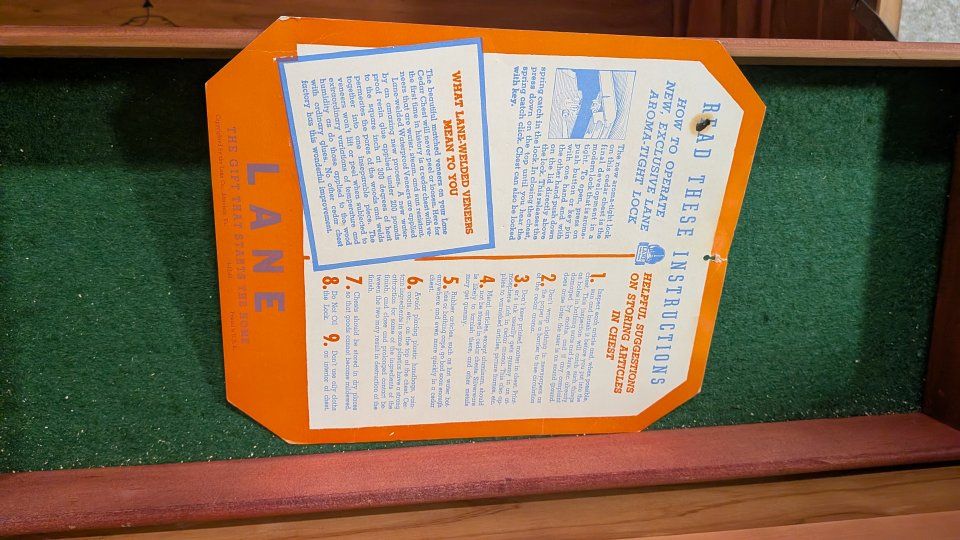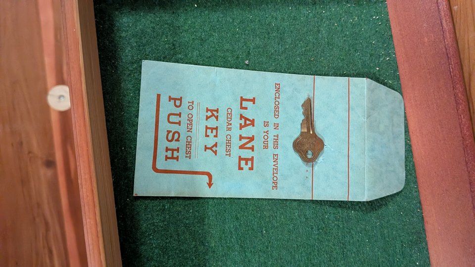 Vintage 1940s Lane waterfall cedar chest with key.