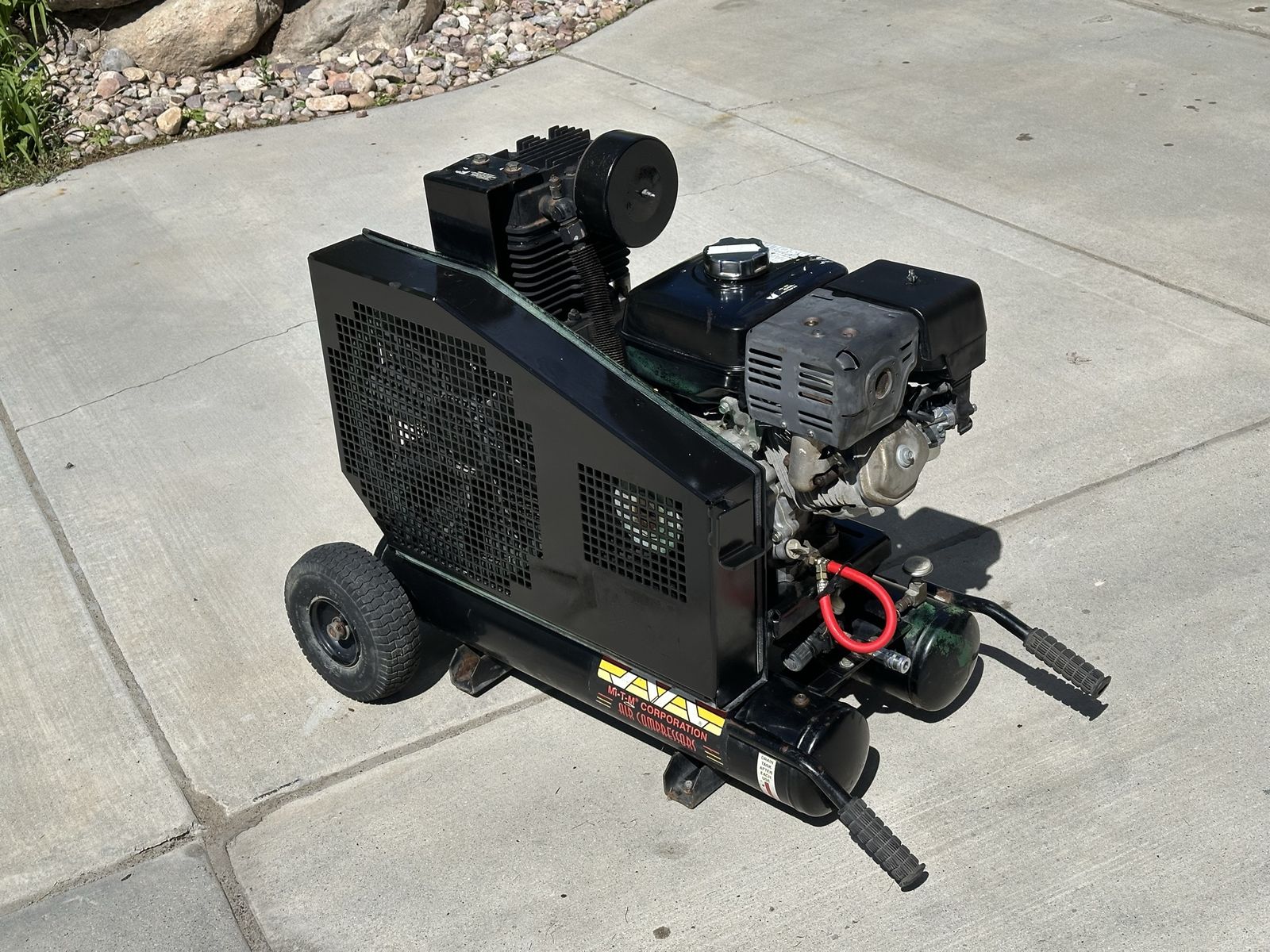 VenmoMi-T-M 8-Gallon Two-Stage Air Compressor (Honda GX270) Looking for a reliable, "workhorse" air compressor that won’t quit on the job? This Mi-T-M unit is professionally maintained, recently serviced, and ready to go to work immediately. Key Specifications: • Model: AM2-PH09-08M • Engine: Honda GX270 (9.0 HP) – Starts easy and runs strong. • Pump: Two-stage cast iron for heavy-duty use. • Capacity: 8-Gallon Twin Tank "Wheelbarrow" design. • Performance: * 18.3 CFM @ 100 PSI • 17.5 CFM @ 175 PSI • Max Pressure: 175 PSI Recent Maintenance & Condition: • Fresh Tune-Up: Just completed (Oil, filters, and spark plug). • New Pilot Unloader Valve: Installed and calibrated. • Tested & Proven: Holds pressure perfectly and cycles exactly as it should. No leaks. This is a professional-grade machine made in the USA, perfect for framing crews, roofing, or mobile service trucks. It’s built with a heavy-duty powder-coated 3/16-inch base plate and a wrap-around belt guard. Possible trade. Let me know what you have to offer