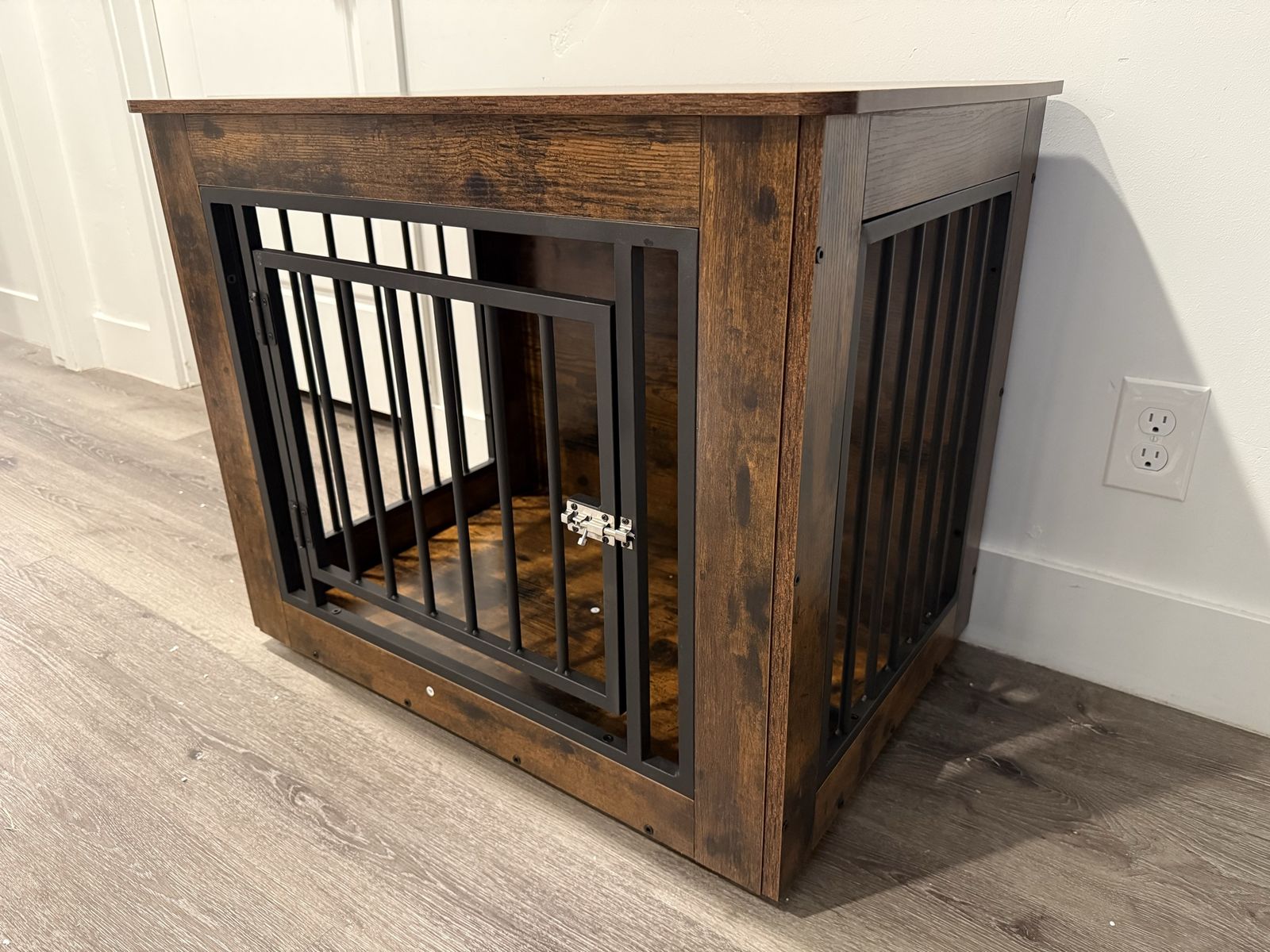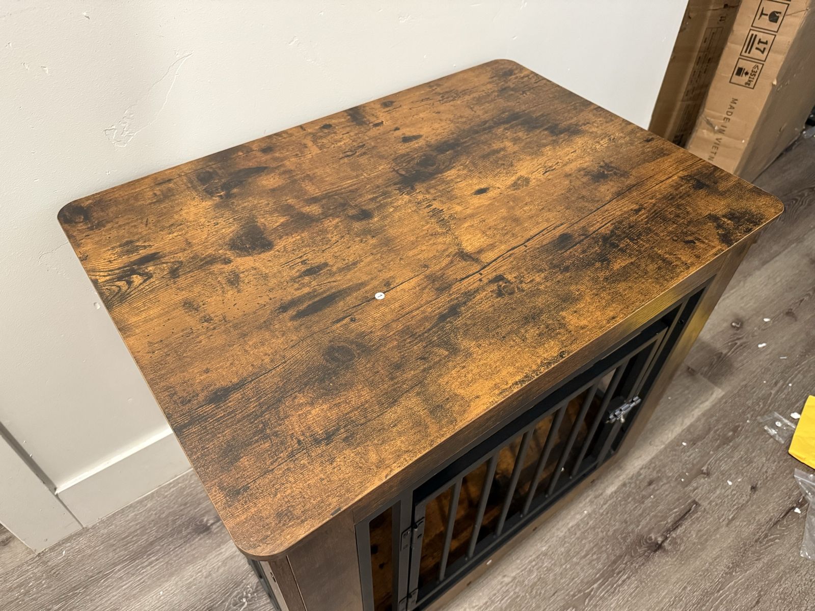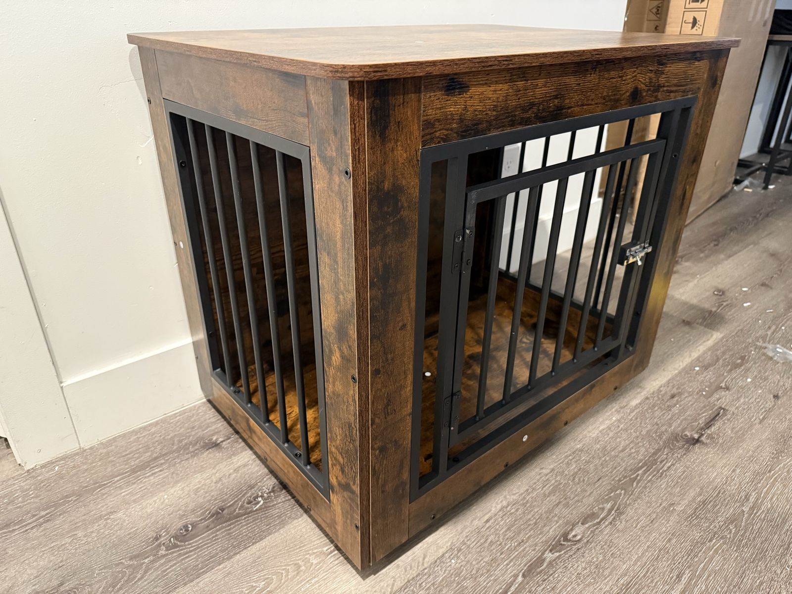 VenmoBrand New Dog Crate Furniture for Medium to Small Dogs, Side End Table, Modern Dogs Kennel Indoor up to 35 lb, 2-in-1 Iron-Wood Fusion Dog Cage with Waterproof Top, Safety Corners,Steel Lock, Rustic Brown