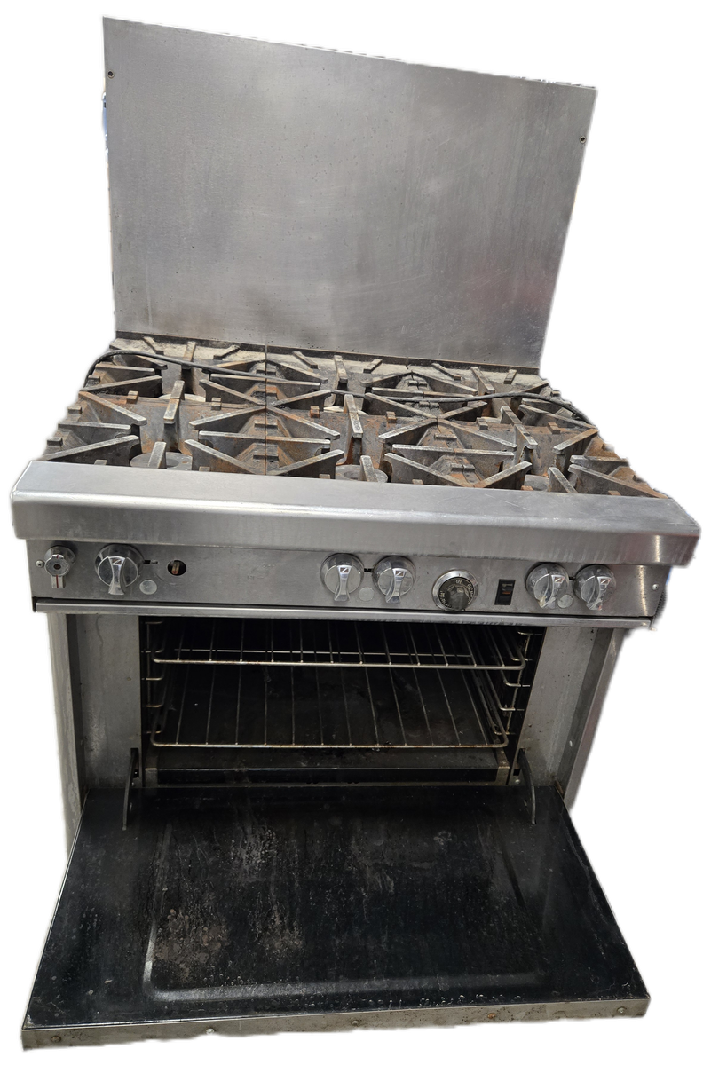 The Southbend 4361A_NAT (QUICK SHIP) Ultimate Restaurant Range Gas 36" is a commercial-grade cooking appliance designed for high-demand foodservice environments. This 36-inch gas range features six non-clog burners with standard grates, optimized for reliable high-temperature performance and ease of maintenance. It includes a convection oven equipped with battery spark ignition, equipped to handle baking, roasting, and multitasking in busy restaurant kitchens. Constructed from stainless steel front, sides, and shelf, it offers superior durability and sanitation. With a combined output of 230,000 BTU, this unit is engineered to support robust culinary operations, providing precise temperature control and consistent heat distribution. The design emphasizes efficiency, safety, and high-volume cooking capacity essential for professional kitchens.