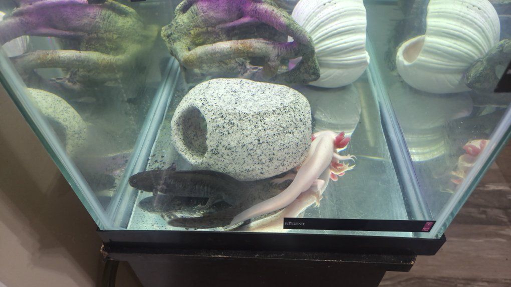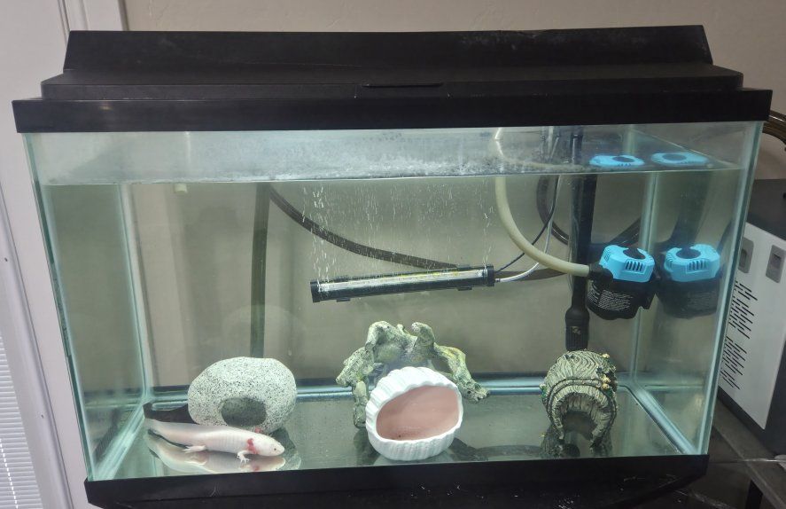 Freshwater 2 axolotls 1 white 1 Brown. the whole fish tank set up and the chiller for the fish tank. $500 Cash, only