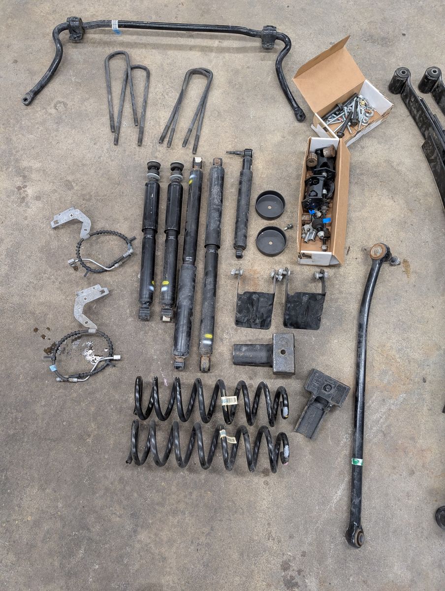 All parts were removed from a new truck with an 11,000 GVW towing packag, that was modified to a non factory suspension kit.