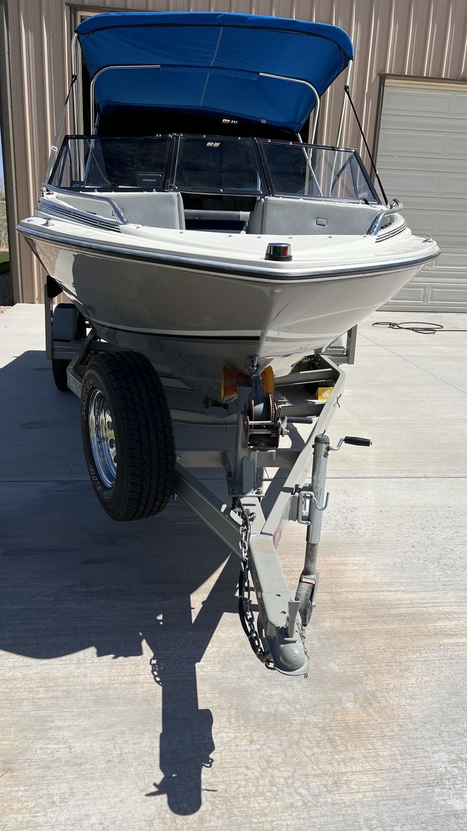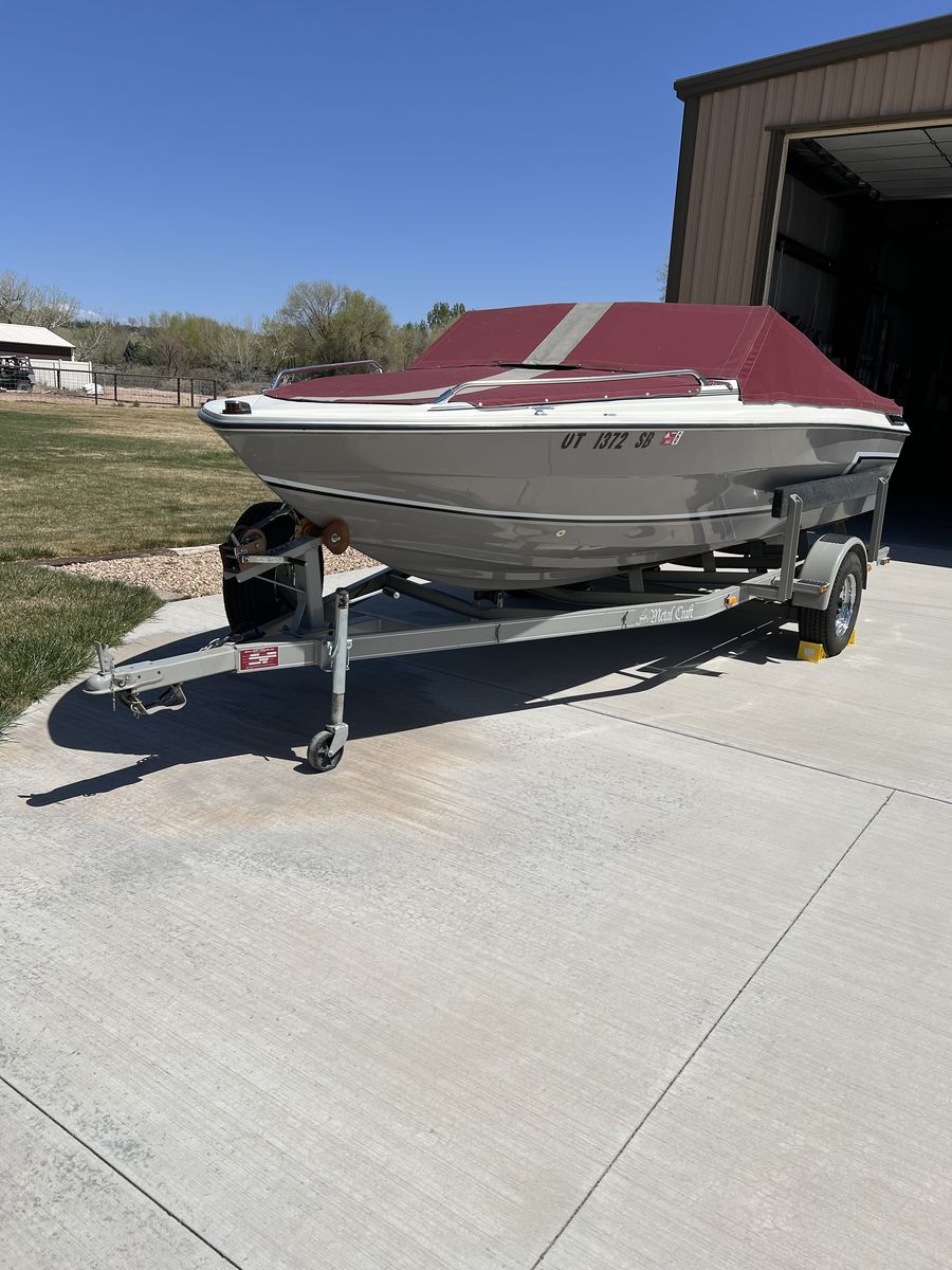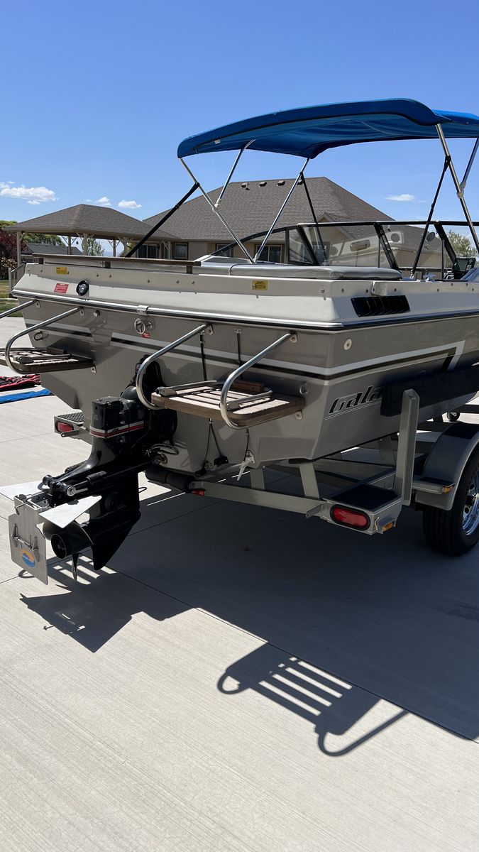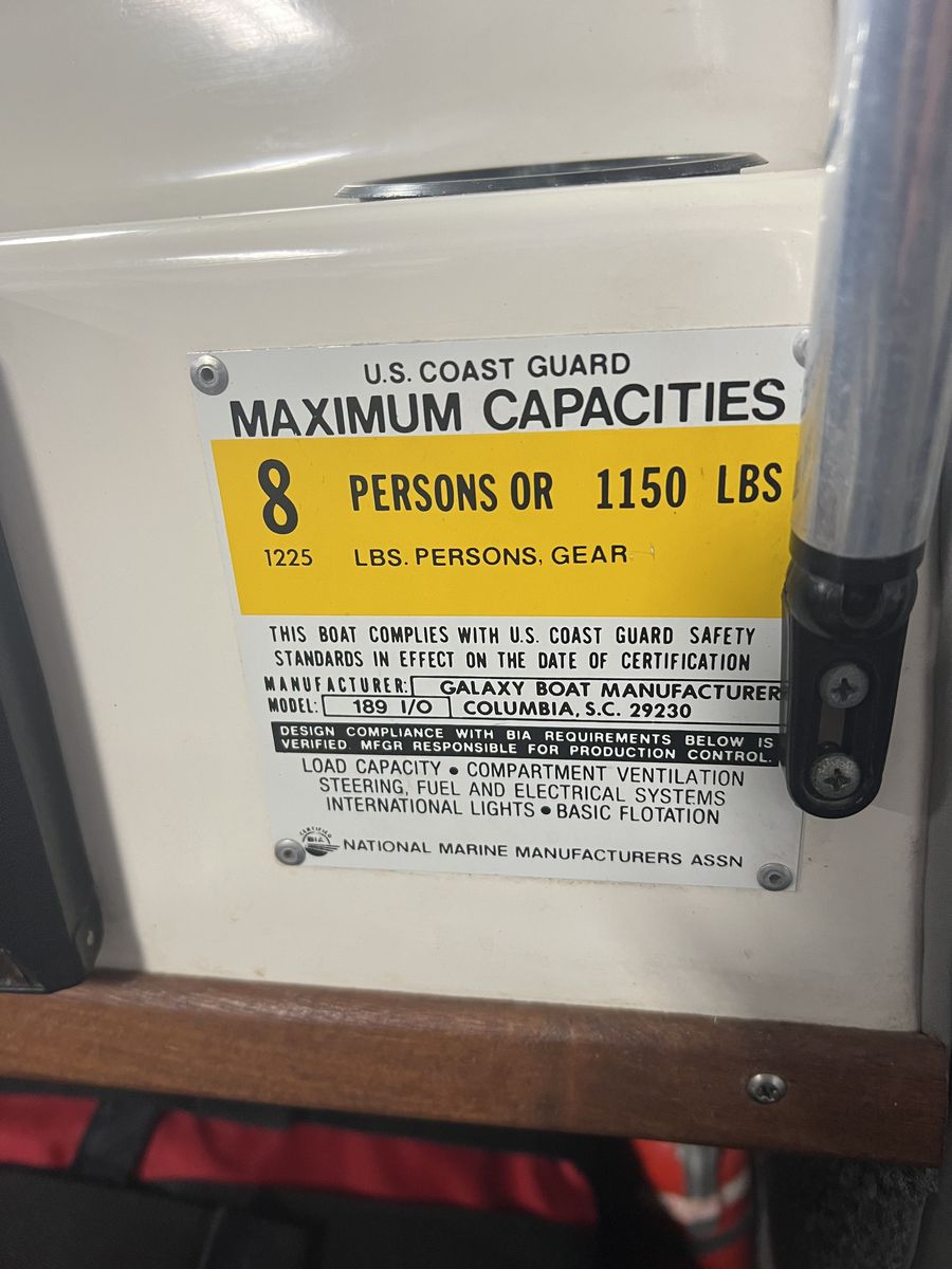 Don't let the year fool you! This is a 1985 Galaxy 189BR with 512 hrs on the I/O engine and is rated for 8 people. The engine is 170 hp and will pull two skiers with no problem. The engine is easily winterized because of the closed cooling system with antifreeze. It has been kept inside and covered when not in use and comes with trailer, travel cover, 2 sets of skiis, ski ropes, 5 life jackets, water toy, bimini top, several docking fenders, Lowrance fish finder/depth gauge, anchor, securing lines, under-deck storage, porta-potty, ice chest in the open, walk-through bow. Comes with an Easy Troller for fishing. Comes with an AM/FM radio/cassette player with telescoping antenna and XM radio hookup, and two swim platforms with ladders. You really have to see this boat to appreciate it!