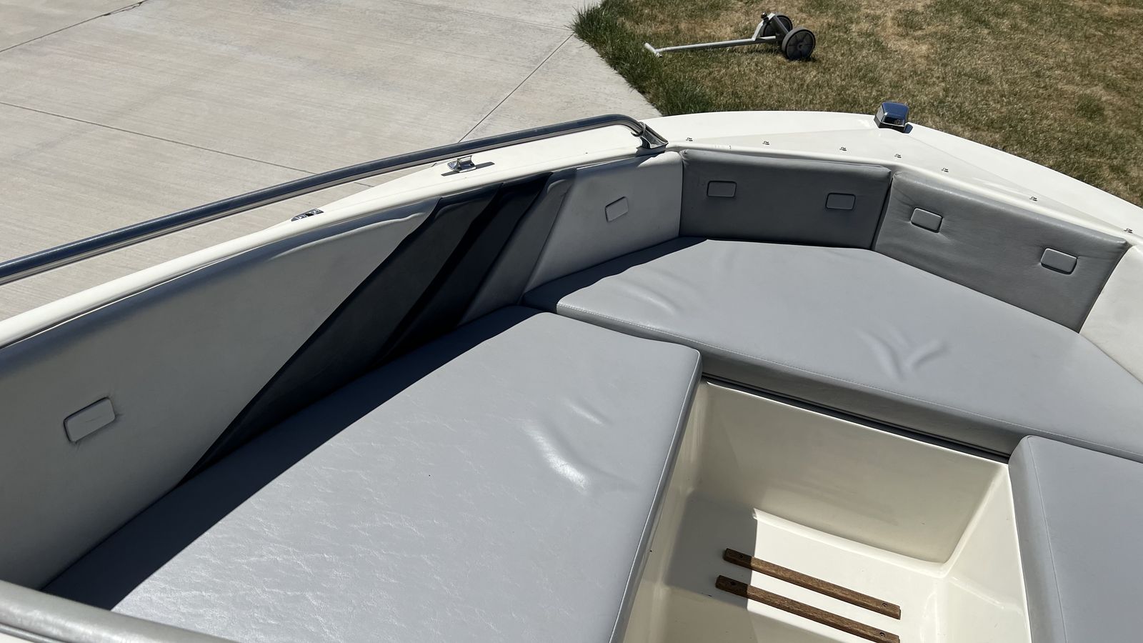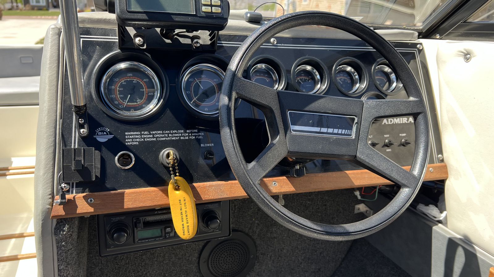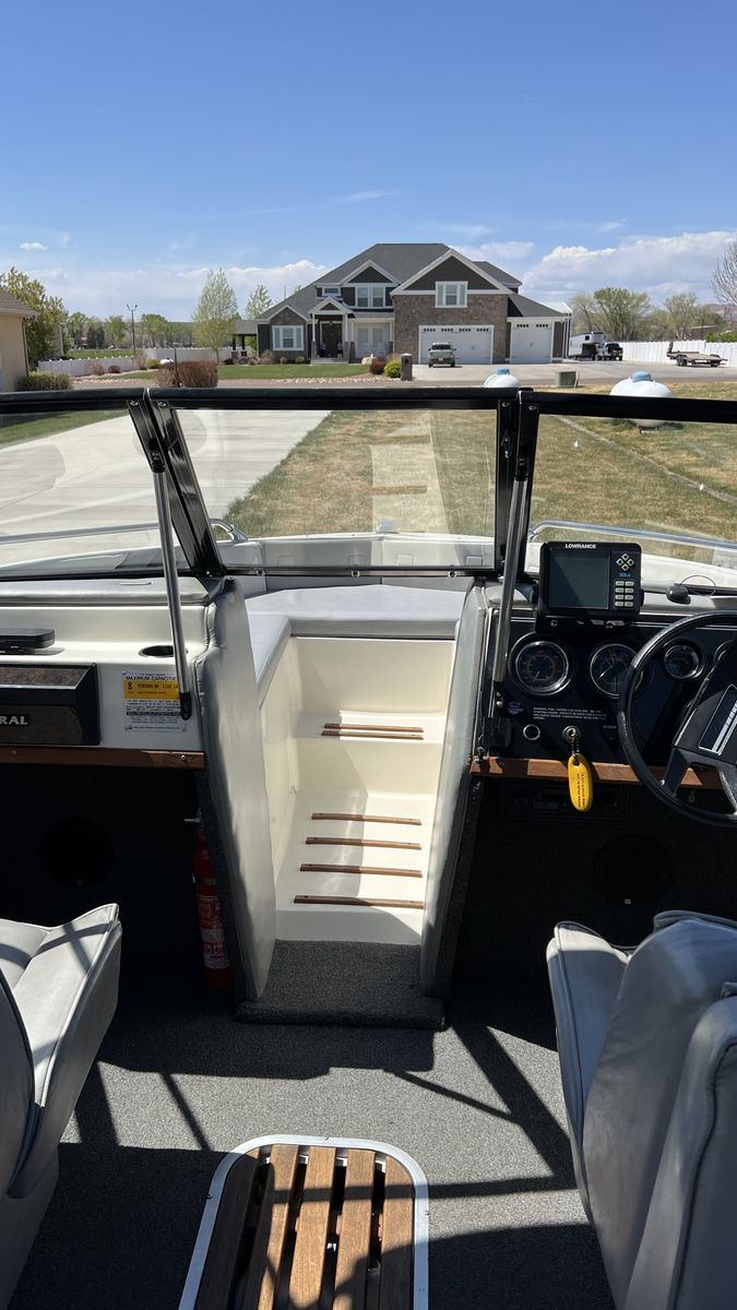 Don't let the year fool you! This is a 1985 Galaxy 189BR with 512 hrs on the I/O engine and is rated for 8 people. The engine is 170 hp and will pull two skiers with no problem. The engine is easily winterized because of the closed cooling system with antifreeze. It has been kept inside and covered when not in use and comes with trailer, travel cover, 2 sets of skiis, ski ropes, 5 life jackets, water toy, bimini top, several docking fenders, Lowrance fish finder/depth gauge, anchor, securing lines, under-deck storage, porta-potty, ice chest in the open, walk-through bow. Comes with an Easy Troller for fishing. Comes with an AM/FM radio/cassette player with telescoping antenna and XM radio hookup, and two swim platforms with ladders. You really have to see this boat to appreciate it!