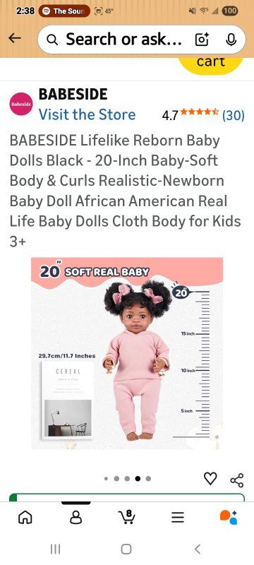 Adorable Lifelike Baby Girl: This 20-inch African American reborn doll features bright open eyes and a sweet, lifelike expression. Her charming look brings instant warmth, perfect for cuddles, photos, and display Realistic Look and Feel: Crafted with soft vinyl limbs and a cuddly cloth body. Hand-painted details, rooted curly hair, and realistic creases make her look and feel just like a real baby girl Pose, Hug, and Play: Fully poseable and perfect for imaginative play. Her pacifier fits snugly in her mouth, and her flexible limbs make her ideal for dressing up or cuddling anytime Safe for All Kids: The life size dolls for girls conform to the safety requirements of ASTM F963 and CPC for ages 3+. Totally safe for your kid Great Gift for Anyone: A heartwarming gift for birthdays, holidays, or collectors. Whether for a child or adult, this lifelike doll brings love, comfort, and hours of joyful interaction.