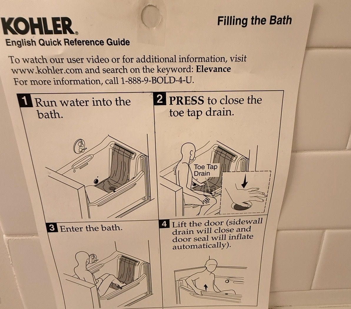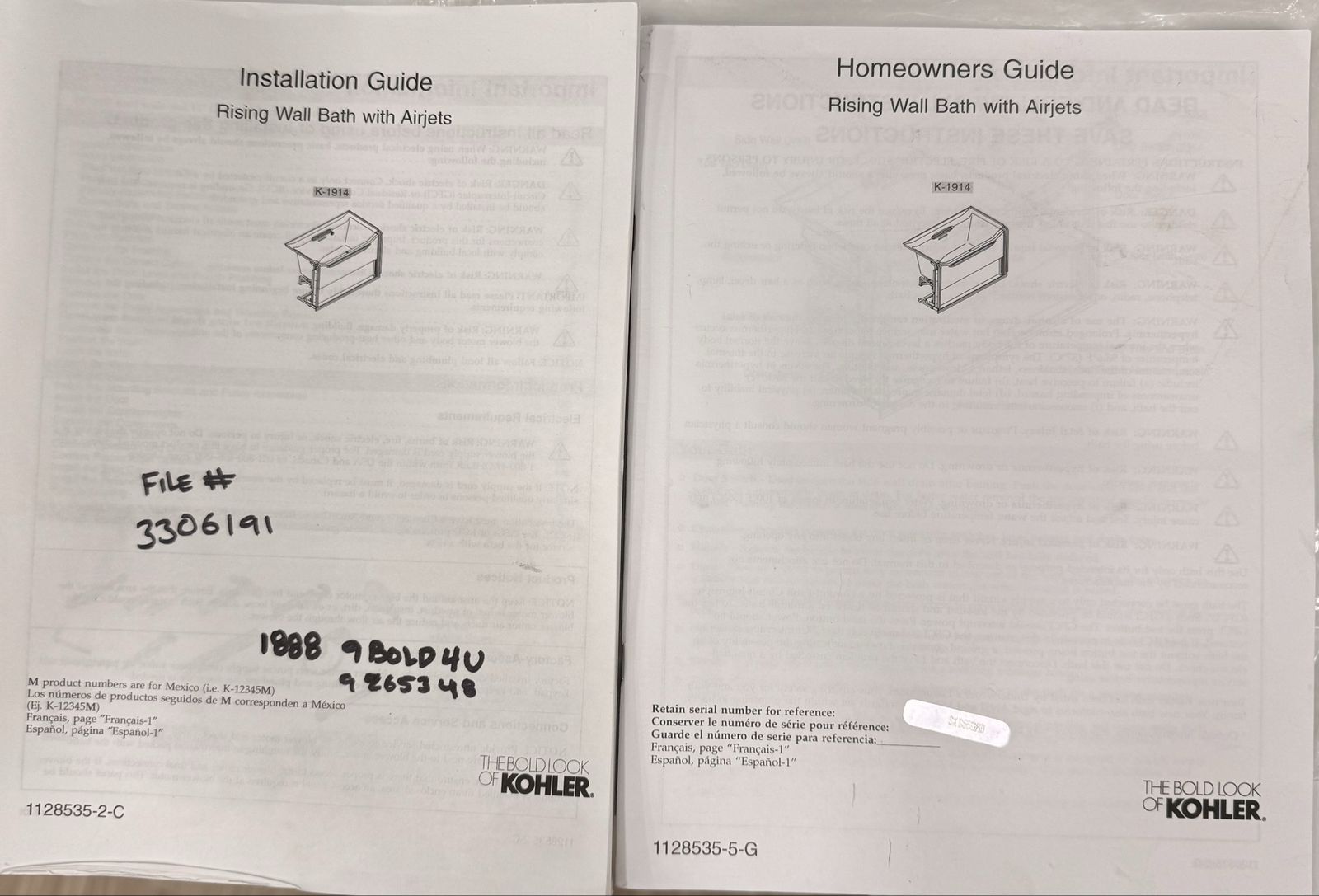 ApplePayTaken out of a remodel. The tub looked new at the time of removal. Here is the description from Kohler’s website: 59 airjets release thousands of bubbles that surround, support, and massage the body Variable-speed blower lets you adjust massage intensity to 18 levels Rising side wall is easy to lift, requiring less than 5 pounds of force Inflatable seal Chair-Height bathing seat makes bath easy to enter and exit Installed grab bar Dual-drain system allows bath to empty in less than two minutes Integrated ledge enables you to reach personal items with ease
