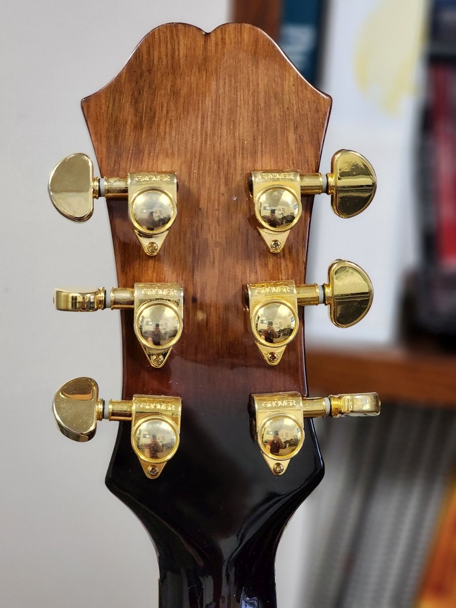 This is an early 2000's "Advanced Jumbo" acoustic featuring a solid spruce top, mahogany body, rosewood fingerboard with beautiful inlays, and slim C-neck provides a great mix of balanced tones with strong volume.