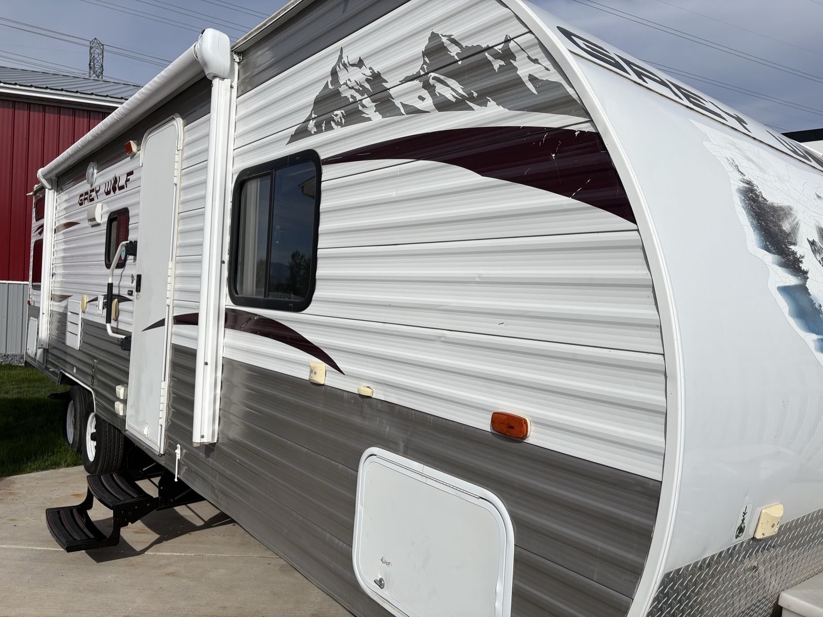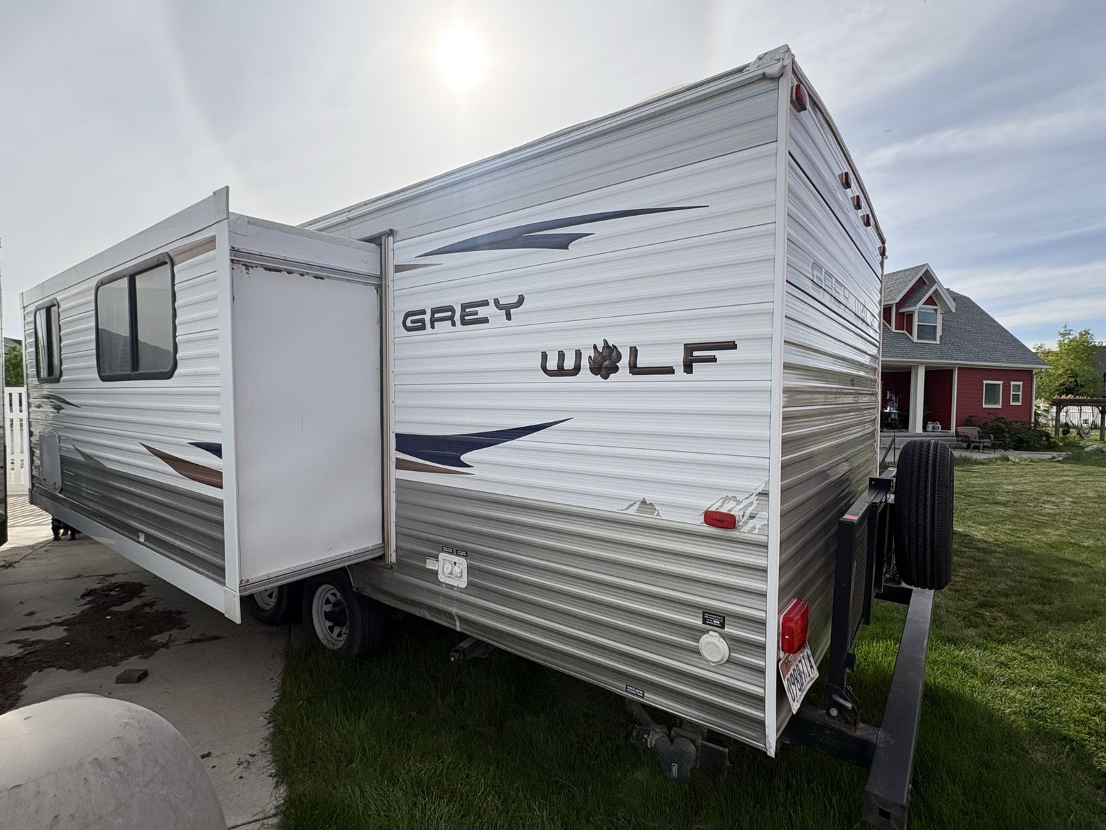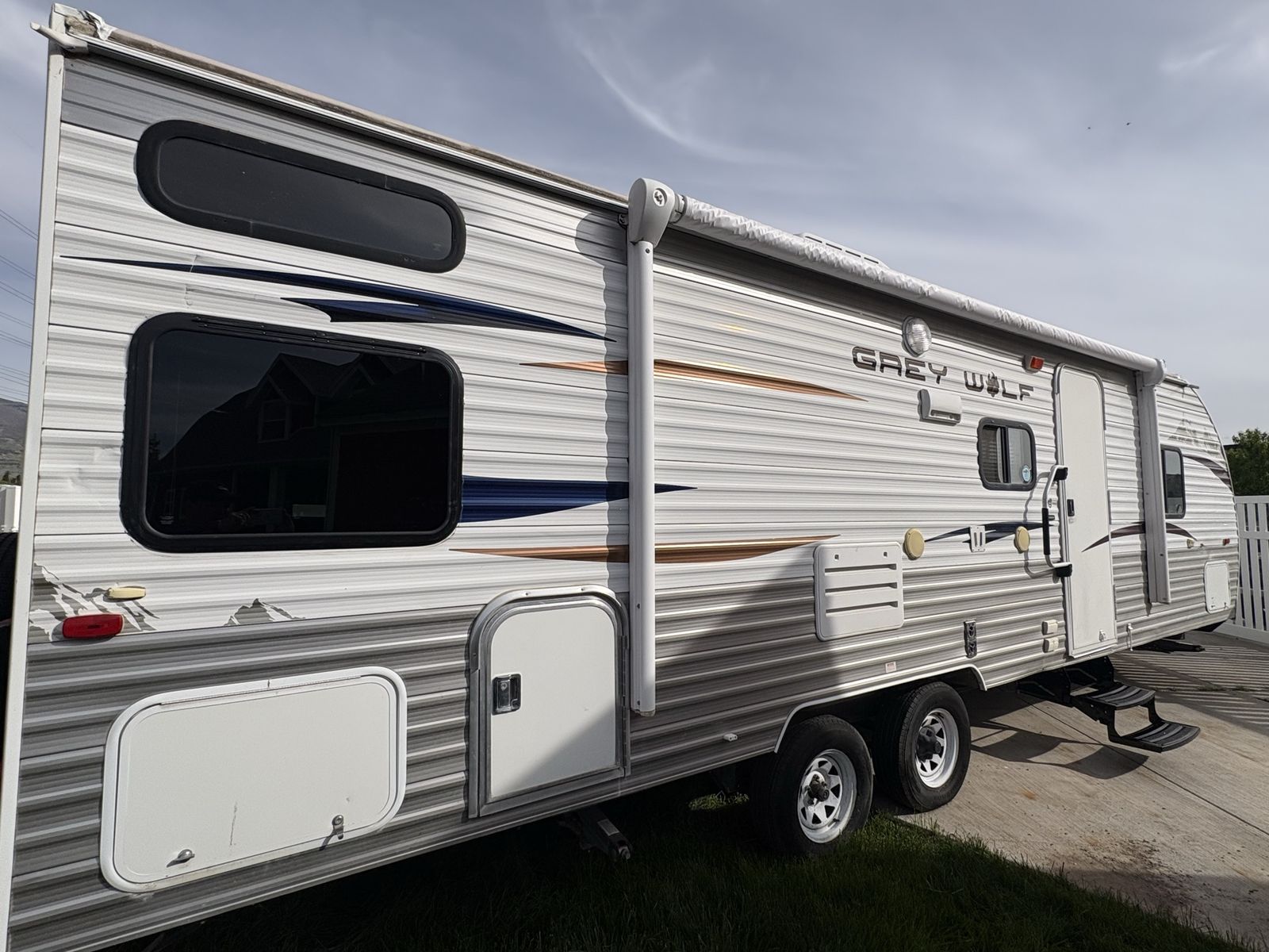 ZelleI am selling a 2023 Forest River Cherokee Grey Wolf Travel Trailer. This is a 28' bunkhouse travel trailer (28BH). It sleeps 8-9 people. It has a kennel/storage under the bunk beds, it has a large slide (kitchen table and couch section), it has stove, microwave, refridgerator, freezer, etc. I had a through inspection done and everything works (A/C, Heater, Hot Water Heater, Slide, Awning, etc. I purchased a new mattress for the queen bed in front and I replaced the Awning material and motor. The tongue jack is also new. There is some minor damage to the siding material (see pictures) dents, and dings etc. that has been factored into the price.