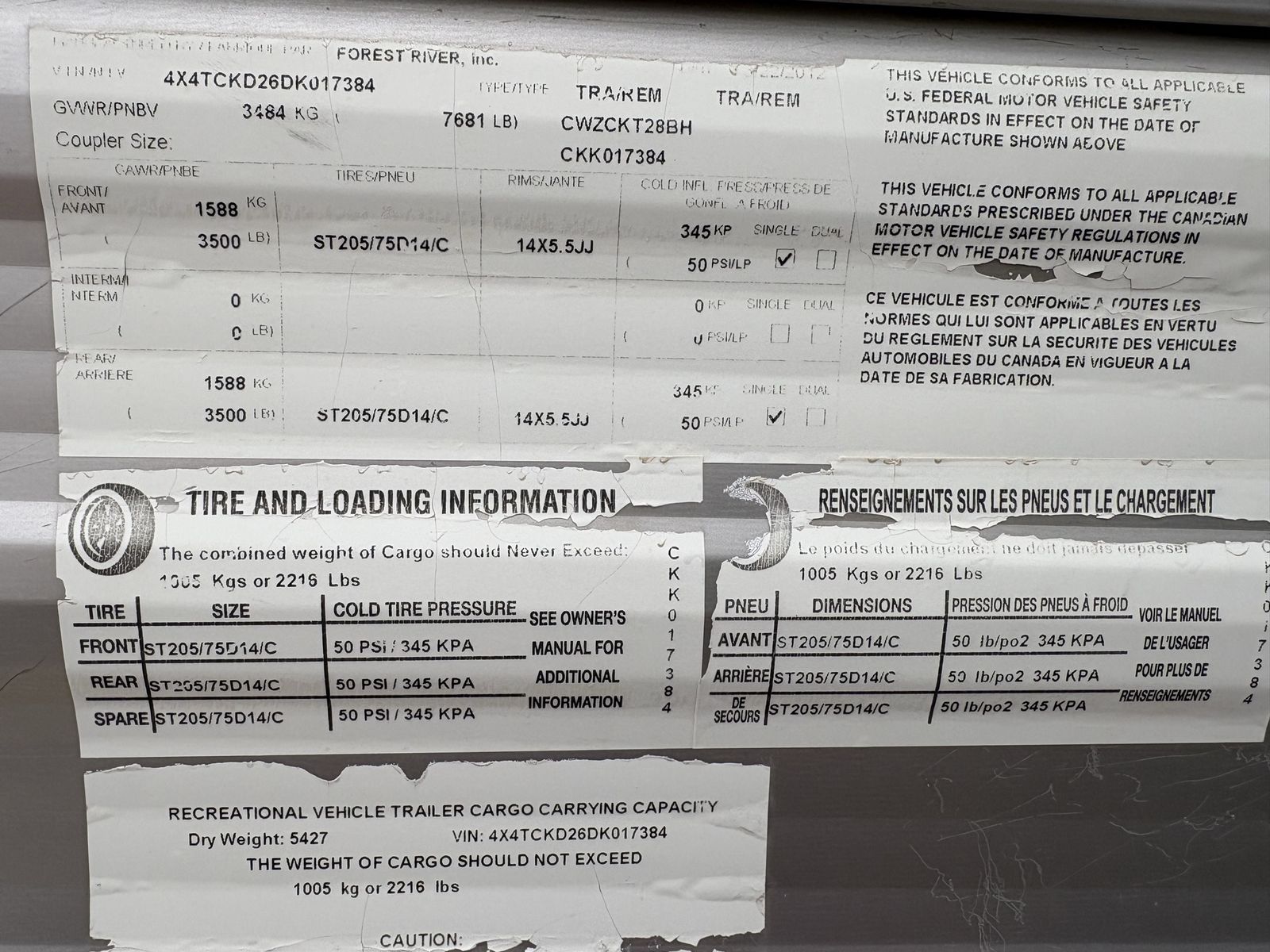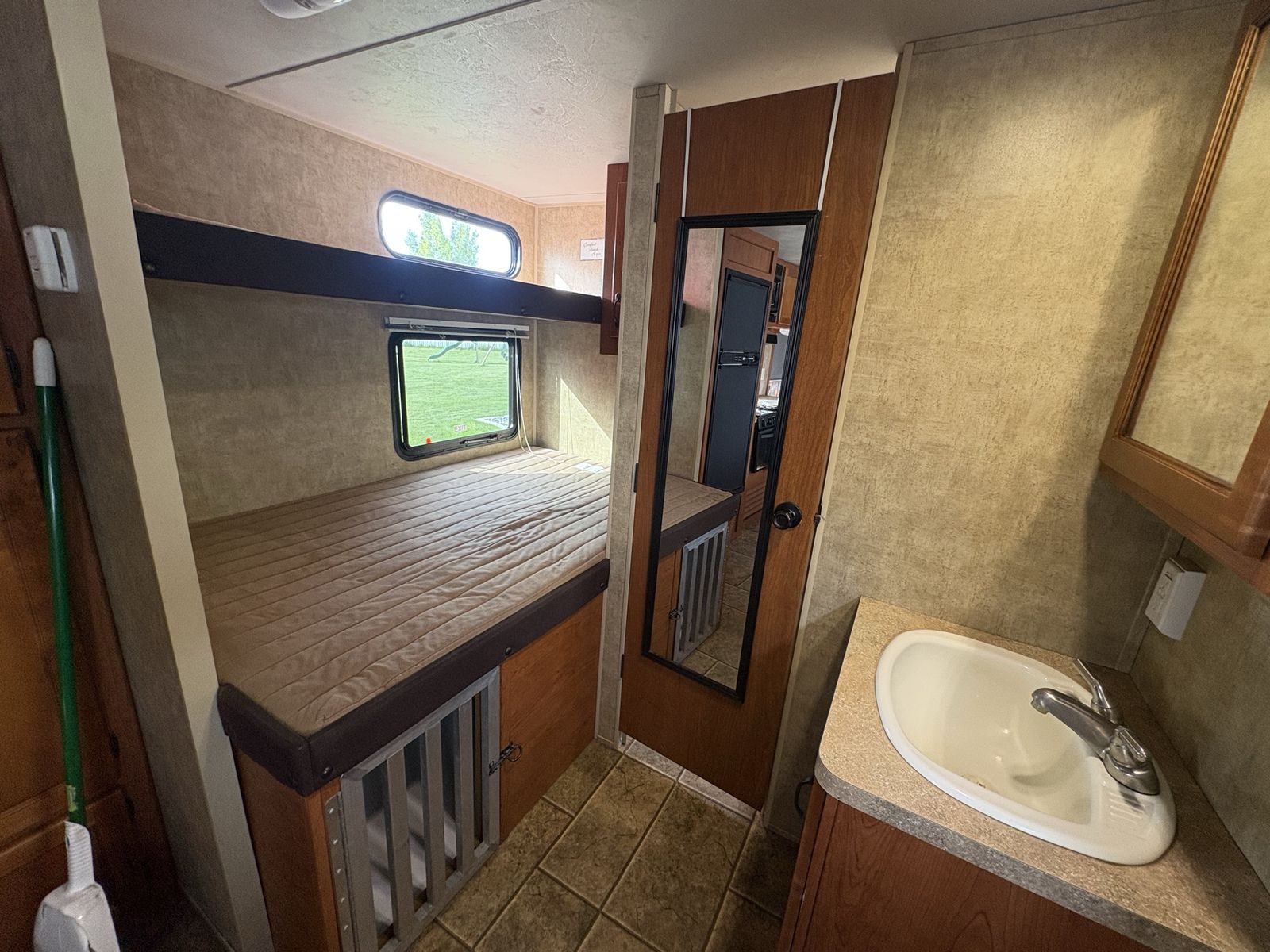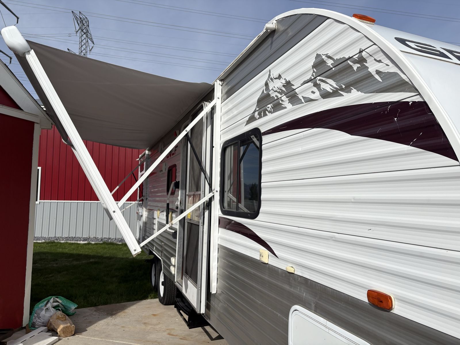 ZelleI am selling a 2023 Forest River Cherokee Grey Wolf Travel Trailer. This is a 28' bunkhouse travel trailer (28BH). It sleeps 8-9 people. It has a kennel/storage under the bunk beds, it has a large slide (kitchen table and couch section), it has stove, microwave, refridgerator, freezer, etc. I had a through inspection done and everything works (A/C, Heater, Hot Water Heater, Slide, Awning, etc. I purchased a new mattress for the queen bed in front and I replaced the Awning material and motor. The tongue jack is also new. There is some minor damage to the siding material (see pictures) dents, and dings etc. that has been factored into the price.