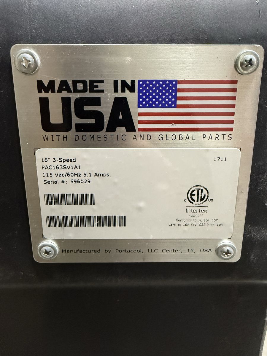 Evaporative cooling/Portacool for sale. 16” fan with 3 settings. Works great, moves a lot of air and is perfect for cooling a shop or garage.
