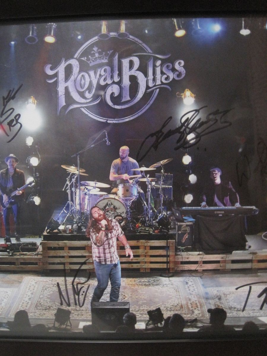 The Royal Bliss Full Band SIGNED FRAMED Poster is a unique and exclusive piece of music memorabilia that includes 3 ticket stubs, a guitar pick, and a sticker. The poster features the signatures of the entire band, adding a personal touch to any music collection. This authentic piece of entertainment memorabilia is a must-have for fans of the band or collectors of music memorabilia.